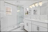 Welcome to this beautifully renovated 3 bedroom plus den and 2.5 bathroom townhome located in idyllic Hamilton Park. This sun-lit single family townhouse features a private backyard, hardwood floors, skylights, large washer/dryer, central A/C, high ceilings, and exposed brick. Past the cozy front porch is the parlor level's open living-dining room with built-ins, perfect for entertaining. Your sleek and modern windowed kitchen offers quartz countertops, European style cabinetry, and stainless steel appliances. As you take the stairs up to the second level you have a lovely skylight, high ceilings, 2 bedrooms and a stunning full marble bathroom complete with double vanities. The primary bedroom boasts custom storage built-ins and faces East. The lower level of the home offers a third bedroom and a large den with exposed brick that leads out into the private backyard oasis perfect for lounging or entertaining.The entire home has central HVAC, which is Google-Nest enabled. Brand new system installed in 2022. Smart home security system is with Frontpoint and available for $45 per month. The home is pet friendly and is conveniently located moments away from Hamilton Park, transportation to NYC, bars, restaurants, and shopping.
