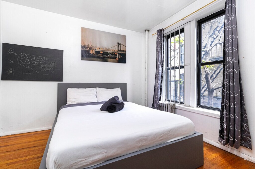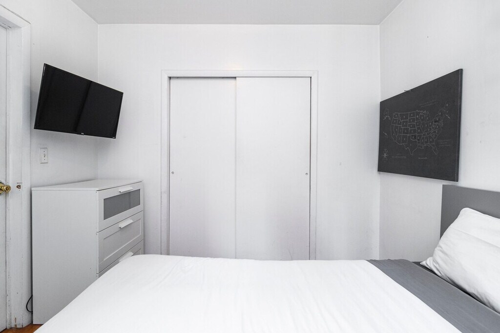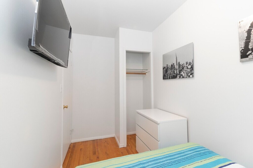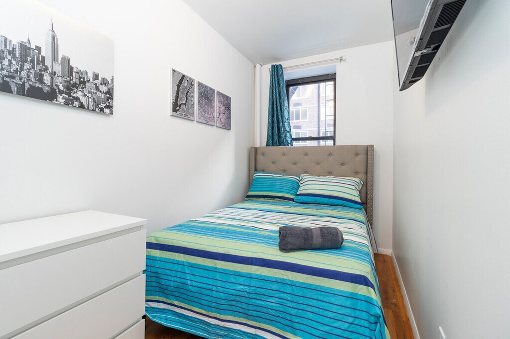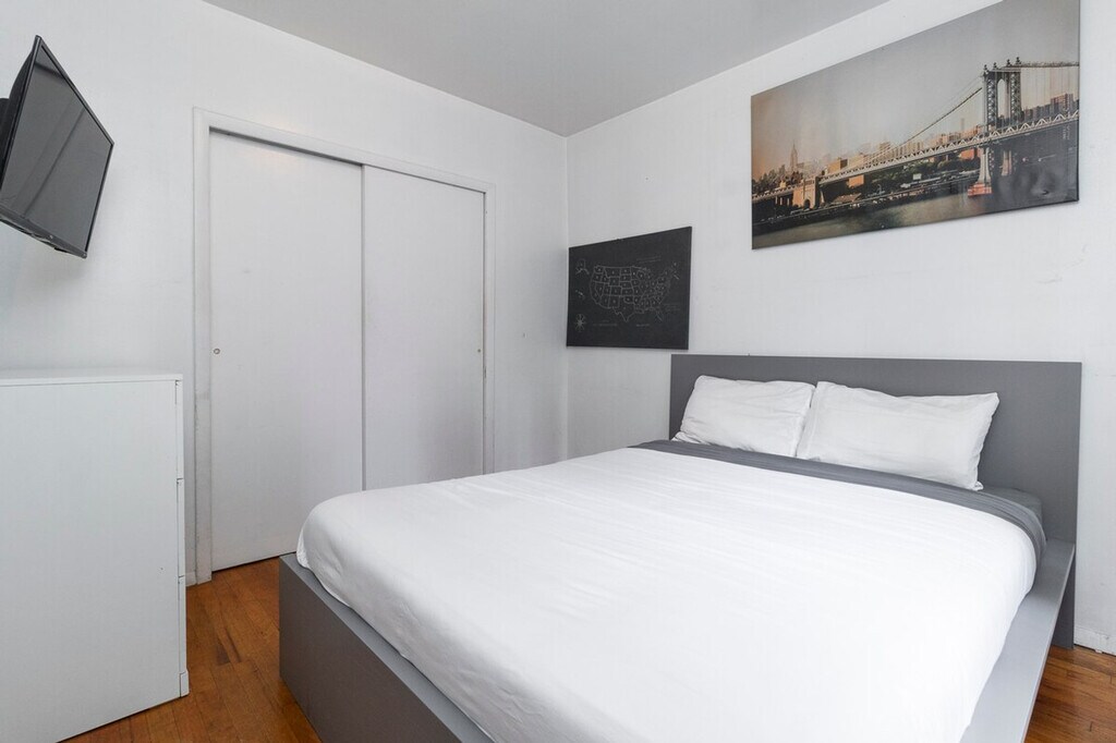 This modern 2-bedroom, 1-bathroom apartment comfortably accommodates up to 3 guests. Nestled on the Upper East Side, it offers easy access to Central Park and New York's top attractions and restaurants. Situated on East 94th Street between 1st and 2nd Avenue, this walk-up building is just steps away from the Q line subway station, conveniently located at the corner of the block. Welcome to a cozy and convenient two-bedroom apartment, perfect for your stay in the heart of the Upper East Side. This delightful unit features two separate bedrooms, a common area that combines a kitchen with a small dining table and chairs, and a centrally located bathroom. Each bedroom is tastefully furnished and offers a comfortable bed, along with its own flat LCD TV for your entertainment. The master bedroom boasts a queen-sized bed and a TV, while the second bedroom provides a full-sized bed and a TV as well. Both bedrooms are equipped with closets, heating and air conditioning units, and windows that let in plenty of natural light. In the common area, you'll find a well-equipped kitchen complete with appliances such as a toaster, microwave, oven, electric kettle, fridge and freezer, and stove. The small dining table and chairs provide a cozy spot for enjoying meals together or planning your daily adventures. Clean linens and towels will be provided for your comfort, ensuring a relaxing stay. Utilities such as electricity, gas, Wi-Fi, and streaming Roku TV are not included in the monthly rent and will cost $300 per month, with a rate of $350 per month from June 1st to October 1st. A pet fee ranging from $200 to $300 applies, and all pets must be approved in advance. Additional cleaning can be arranged for an extra fee. Located in the heart of the Upper East Side on E 94th Street between 1st and 2nd Avenue, the neighborhood is home to some of the most famous designer stores, well-known restaurants, cinemas, supermarkets, comedy clubs, and coffee shops. Central Park, the Metropolitan Museum, and the Guggenheim Museum are nearby. This convenient neighborhood offers everything you may need just a couple of minutes from the apartment, including drug stores, nail salons, US Post Office, FedEx and UPS locations, banks, money exchange, and barbers. The new Q Second Avenue and Broadway Express subway station is just a few steps away from the apartment, and the 4, 5, 6 Green Line 86 Street Subway Station and M15 cross-town bus are within walking distance, making it easy to travel up and down the city with ease. A minimum stay of 90 days may be required between June 1st and September 1st. To ensure a smooth check-in process, coordinate your arrival time in advance, at least 72 hours prior to check-in. For last-minute bookings, provide advance notice of a few hours. A late check-in fee of $50 will be charged for arrivals after 10 PM, and a fee of $100 will be charged for arrivals after midnight. While access to the mailbox is not guaranteed, you can receive packages without any issue. The furniture and decoration in the apartment may vary from the photos listed online, as we periodically update and refresh them. Check-out time is by 11 AM. Before you check out, please empty the refrigerator and throw away all trash. Each guest must present a valid government-issued photo ID at check-in. No loud music, parties, or smoking are allowed, and violations may result in penalties. If you require early check-in, late check-out, or have any special requests (e.g. additional guests, luggage storage), please submit them in writing in advance. All requests are subject to availability and may incur an additional fee if approved. As part of our standard guest verification process, the partner will request that you complete a short application and authorize a background check a few weeks prior to arrival. Instructions will be provided closer to your check-in date. Please note: A $75 application fee may apply. [SI]