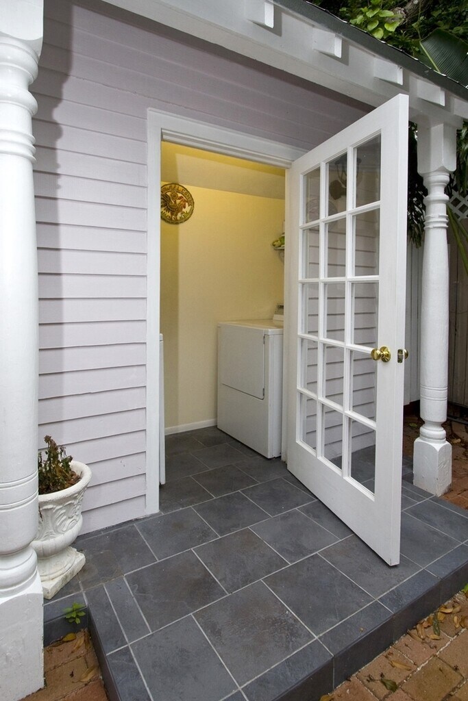 Beautiful second floor studio for two on the second floor of the historic Sailmaker's House. - Incredible location in Historic Old Town! This property is located 1.5 blocks from the Historic Seaport and 4.5 blocks from Duval Street. The open floor plan maximizes the space in this airy tree top studio. Comfortable Queen size bed will inspire sweet dreams and the large built in closets will easily store your belongings. Enjoy a glass of wine and a novel in the leather club chair. The flat screen TV and cable will ensure that you won't miss any of your favorite programs in paradise. The multi position double chaise is perfect for lounging while reading or snuggling while watching tv. You will be living the Key West life to its fullest in this breezy studio with two balconies to choose from. Enjoy the sweet tropical breezes on your private second floor balcony. Sunbathe or dine al fresco on the larger shared side balcony. The bathroom features a tub / shower combination, a pedestal sink and vanity cabinets. Laundry facilities are conveniently located in the downstairs brick courtyard. Local restaurants in walking distance include Harpoon Harry's, Pepe's, Turtle Kraals, Half Shell Raw Bar, Prime Steakhouse, Michael's Restaurant, Bo's Fishwagon, Cuban Coffee Queen and Help Yourself Organic Cafe. Walk a little over one block and you are at the Historic Seaport where the Schooner Hindu and the Yankee Freedom are anchored. Stroll the boardwalk and enjoy the sunset or marvel at the yachts and sailboats. Become a regular at the incredible pool during the day at Dante's! The sailmaker, Samuel J. Albury, made and repairedSails during the late 1800s to the early 1900s from his home and workshop located at 327 Margaret Street. His home was one of the original homes of Key West. Built by ship builders from Cypress and Dade County Pine. It is of Classic Revival Form boasting of a fresh water well and close proximity to the harbor. The waterfront at that time reached almost to Margaret St. and James street. On that beach the new or repaired sails where often stretched and laid to dry. Shrimp boats and turtle crawls were plentiful. Under the loving care of its present steward, The Sailmaker's House is a charming home today as it was then.