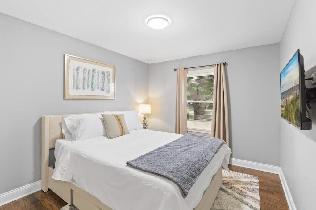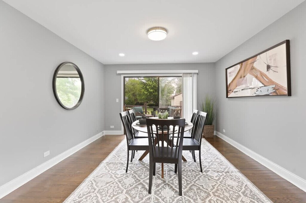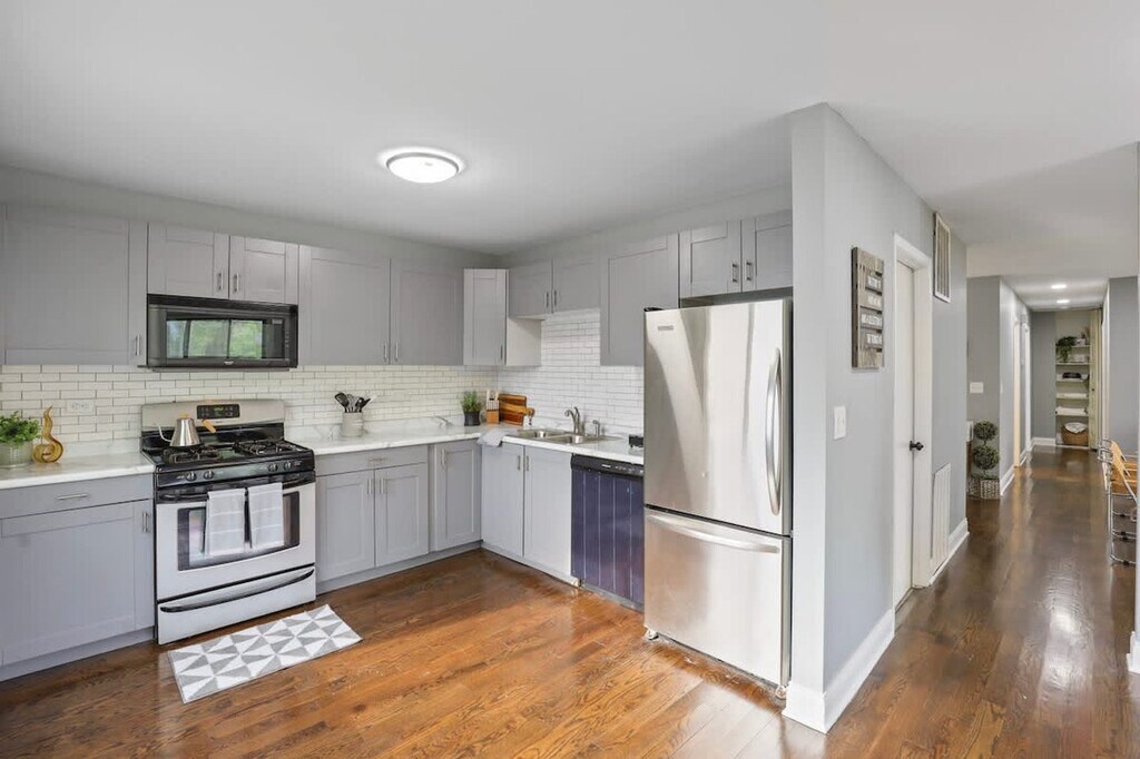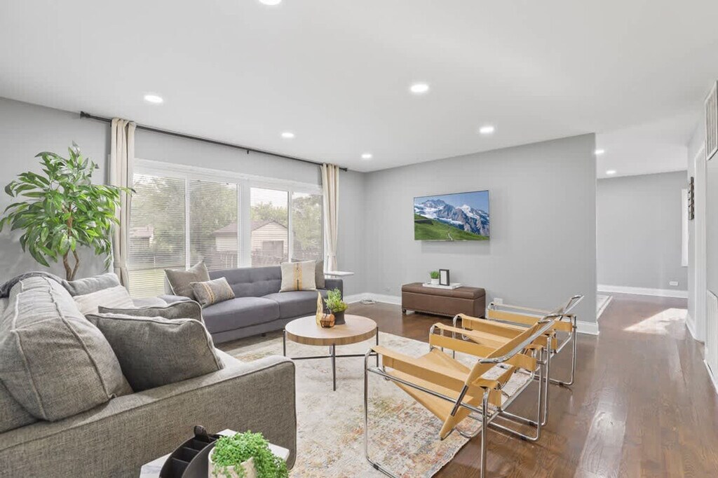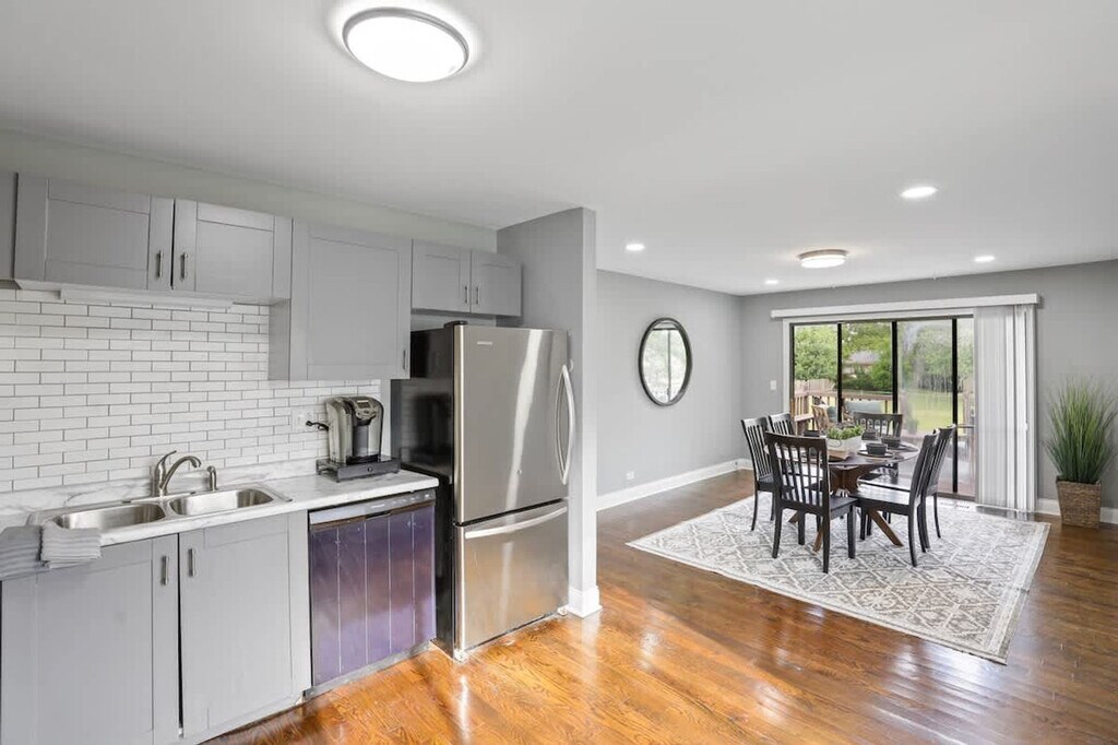 Relax and unwind in this spacious suburban home in Bolingbrook, perfect for short-term stays or longer visits. This stylish 3-bedroom, 2-bath home offers premium linens, a fully equipped kitchen, and high-speed Wi-Fi. Enjoy the oversized deck and large backyard for outdoor relaxation. Located just 5–7 minutes from malls, hospitals, and highway access, this home is perfect for comfort and convenience. This home is professionally managed for a clean and seamless living experience. It features three comfortable bedrooms: a king-size bed with premium linens in the first bedroom, a queen-size bed with premium linens in the second, and a full trundle bed with a slide-out twin in the third. There are two full bathrooms with quality bath essentials, fresh linens and towels, a fully equipped kitchen with modern appliances, a coffee maker with filters, cream, and sugar, and a washer and dryer for guest use with detergent provided. The oversized deck and large backyard are perfect for gatherings. Optional services include grocery concierge, chef, and massage. Pets are allowed with a $200 pet fee, which should be added to your reservation when booking. The home is located in a quiet, family-friendly suburban community of single-family homes. It's conveniently located near highways for easy travel, with local shopping and dining just 5 minutes away. Nearby attractions include Bolingbrook Promenade Shopping Mall, Cypress Cove Family Aquatic Park, Hidden Oaks Nature Center, Boughton Ridge Golf Course, Illinois Aviation Museum, Morton Arboretum, Naper Settlement Museum, and Downtown Naperville. Rideshare services are readily available in the area. The property enforces a strict no-party policy. Indoor smoking will incur a $200 fine, and there is a $500 deep cleaning fee if evidence of smoking or vaping is found after checkout. Quiet hours are from 11:00 PM to 7:00 AM, and any event that triggers a noise complaint will be subject to a warning and a $300 fee if repeated. Tampering with or breaking the outside camera will result in a $350 maintenance repair fee and immediate eviction. Unauthorized late checkouts will incur a $100 fee. The home is well-suited for remote work with high-speed Wi-Fi and comfortable spaces to work. [SI]