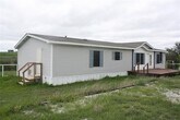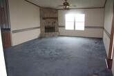 This 3-bedroom, 2-bathroom mobile home sits on a large lot and features a split floorplan, with the master bedroom separated from the other bedrooms. The home includes a living area with a fireplace, kitchen, and dining space, and an open yard surrounds the property.
