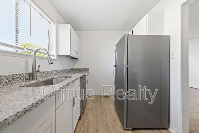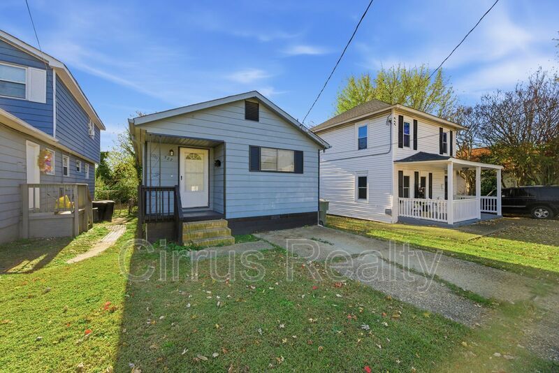 Updated rancher with three bedrooms and one full bath. All new kitchen including granite counter tops and stainless steel appliances. Updated bath. Three spacious bedrooms with good closet space. Great room with area for dining. Central heat and air. Separate utility room with dryer hook up. Hardwood floors in main living area and bedrooms. Washer hook up in kitchen. Fenced backyard. Covered front porch. Attached rear storage closet. Driveway and street parking. Amenities: washer and dryer hook ups, driveway parking spaces, covered front porch