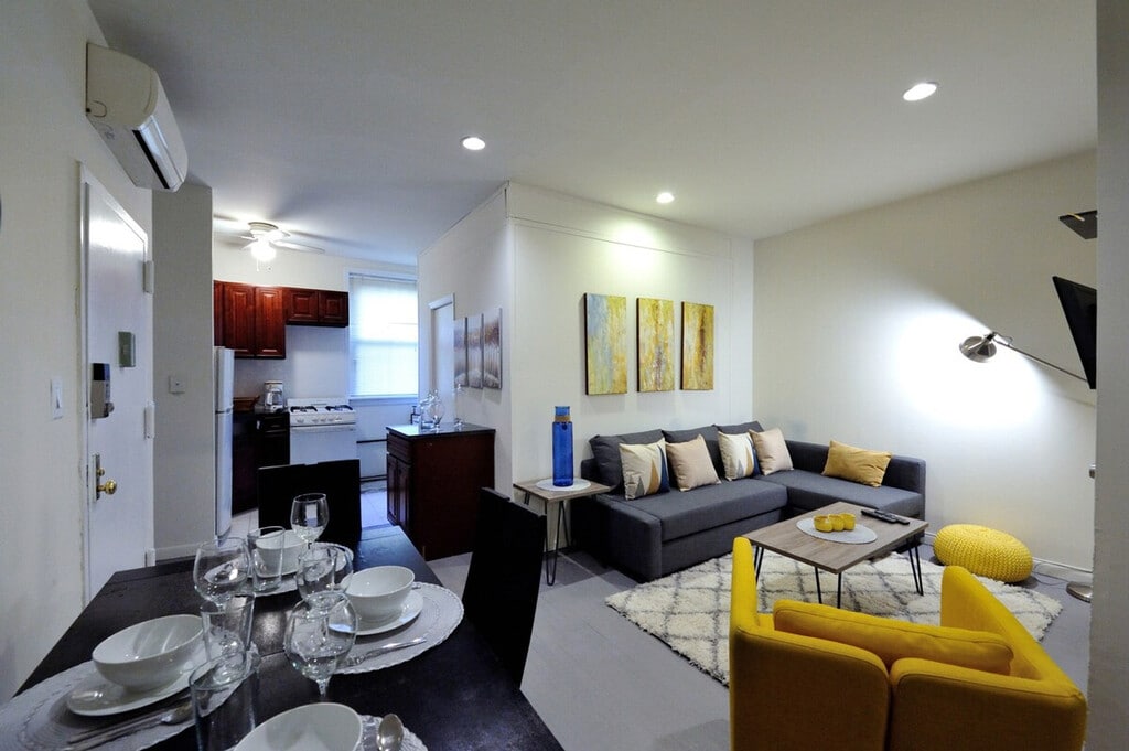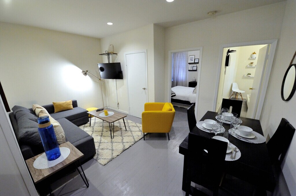 Feel at home in this charming Midtown West 3-bedroom, 1-bathroom furnished apartment. This apartment is located one flight up in a quintessential NYC building. The full-floor apartment features three comfortable and well-maintained bedrooms. Enjoy the living room space with a sofa, flat-screen TV, and dining table for six. The apartment is Wi-Fi ready and fully equipped with all the basics and necessities for your convenience. Utilities for gas, electricity, and Wi-Fi services are billed separately and in addition to the rent. Centrally located, you can walk to restaurants, bars, Chelsea Market, and the Hudson River.