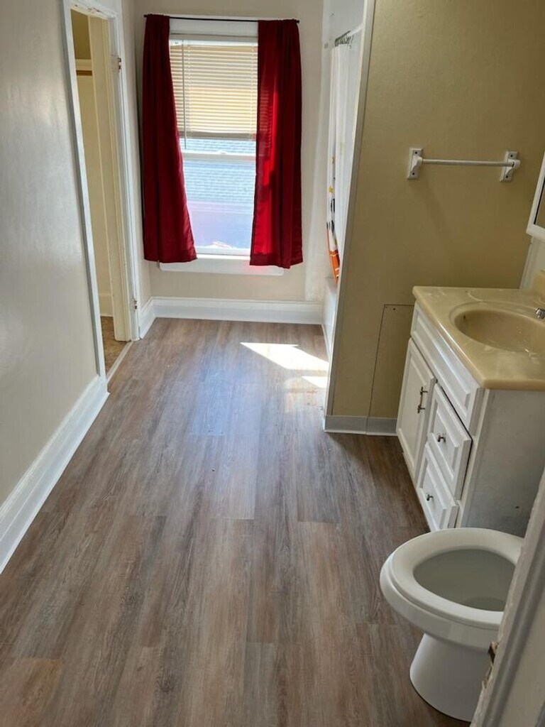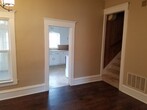 Three-bedroom one-bath house. Nice enclosed porch on the front of the house as well as the back of the house. Main floor has, nice kitchen. Dining room with Chandelier. Living room. And a nice den with French doors. Laundry room with washer and dryer hookups and utility room are also on the main floor adjacent to the dining room. Upstairs consists of three bedrooms. And one bathroom with a walk-in closet in the bathroom and in the master bedroom. Nice hallway upstairs with a banister for the stairway. 2 1/2 car detached garage behind the house. With additional parking on asphalt. Tenant is responsible for all utilities, trash service, lawn care and snow removal. No pets, no smoking.