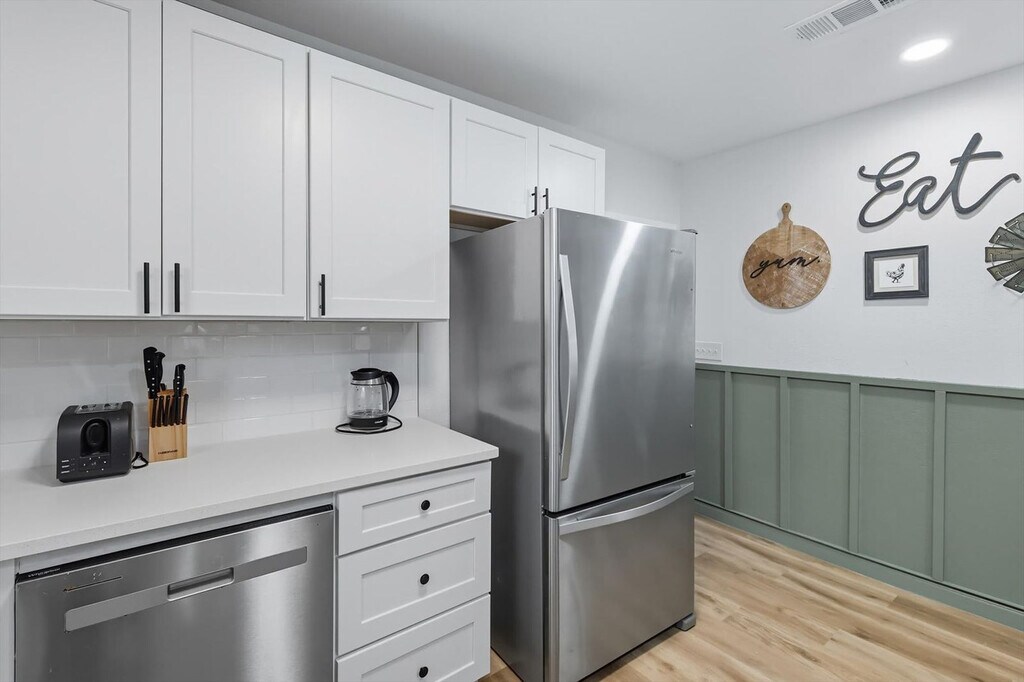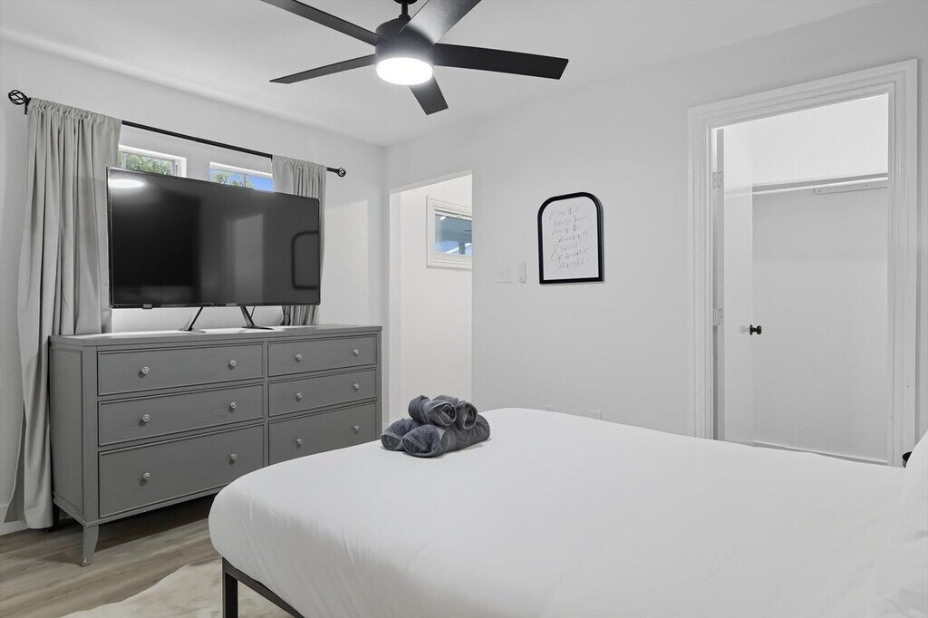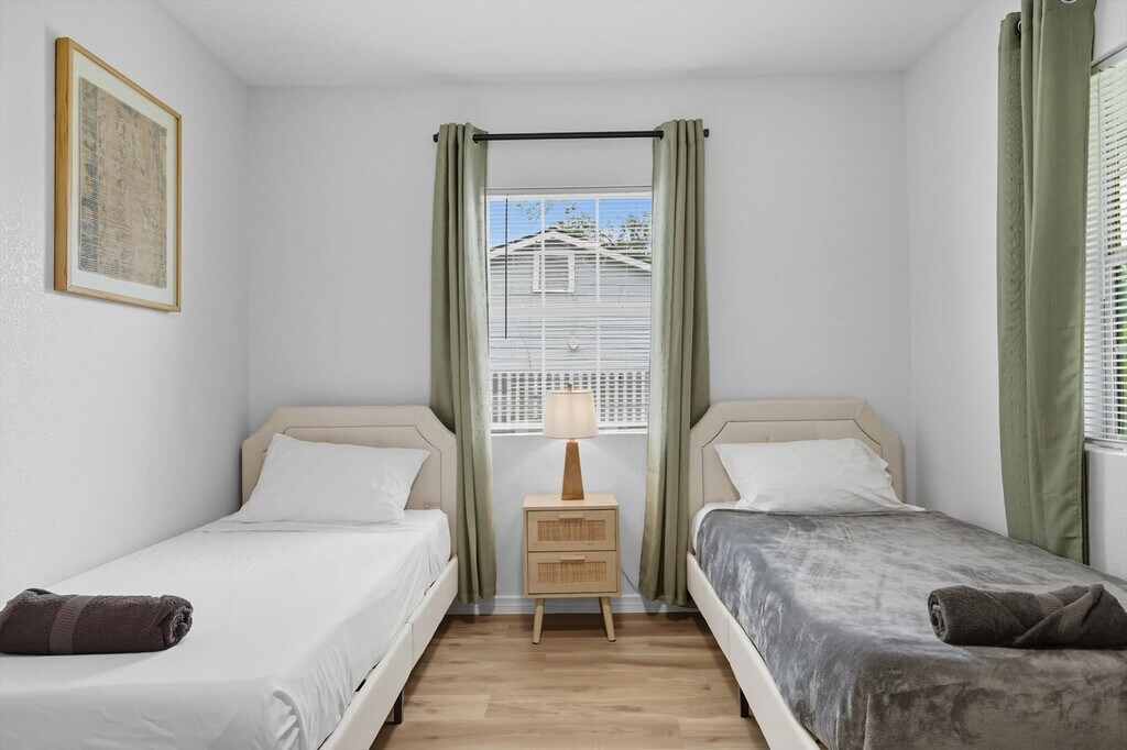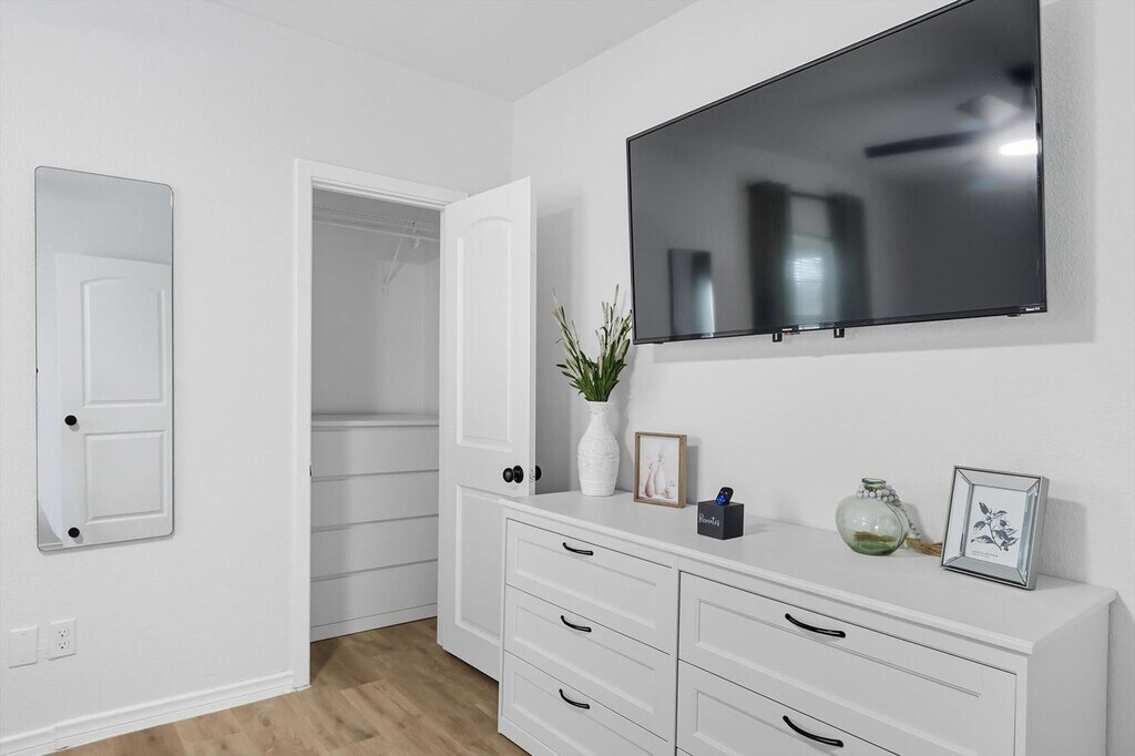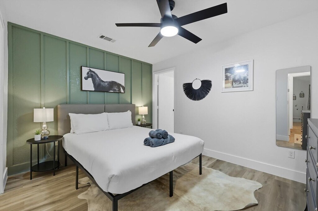 Quiet and tranquil, this adorable cottage is perfect for those looking for a serene escape. Away from the hustle and bustle of busy city life, this 3-bedroom, 3-bathroom country home will allow you to slow down and remember the important things in life. Full of southern rustic charm, this place’s thoughtful furnishings, curated décor, and attention to detail are sure to win you over. The cottage features a fully equipped kitchen, a backyard with a patio and BBQ grill, and sleeps up to 6 guests. This home caters to both short-term and medium-term stays, making it an excellent choice for corporate housing needs. The modern farmhouse kitchen is fully equipped with stainless steel appliances, cooking essentials, and even coffee to start your day right. The dining room features a spacious table with elegant tableware, while the living area offers vaulted ceilings, an oversized sectional, and a flat-screen TV with high-speed Wi-Fi. Each bedroom is a sanctuary of serenity with plush mattresses, TVs, and matching bedside tables and lamps. The bathrooms are sparkling clean and include essential toiletries. Complimentary parking is available to guests and a laundry room with a washer and dryer is provided. Pets are welcome with a non-refundable pet fee of $150 per pet, with a maximum of 2 pets per stay. Pet cleaning fees apply and pets should be kept off beds and furniture. Located in Grayson County, Texas with a richly diverse history, Sherman is situated only 10 miles south of Lake Texoma, one of the largest reservoirs in the state. Well-known for its champion bass fishing, sailing, camping, and hiking, Sherman lives up to its slogan – “classic town, broad horizon”. Nearby attractions include the Sherman Jazz Museum, Kelly Square, 903 Brewers, and Hagerman National Wildlife Refuge. For those interested in exploring Plano, noteworthy attractions are just a 45-minute drive away. We do not allow parties or large unauthorized gatherings on our property. Smoking of any type is not allowed, with violations subject to a $450 fine plus the cost to clean, deodorize, and repair damages. Check-in is at 4pm and checkout is at 10am. Small low-key gatherings are allowed only upon request and approval in advance. Noise levels are monitored to ensure compliance with local ordinances. The cottage is remote work-friendly with high-speed Wi-Fi and a comfortable living area that can double as a workspace. A laptop computer is not included. [SI]