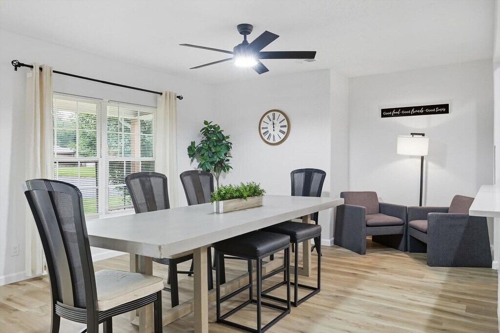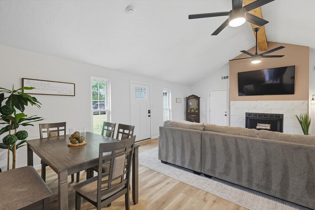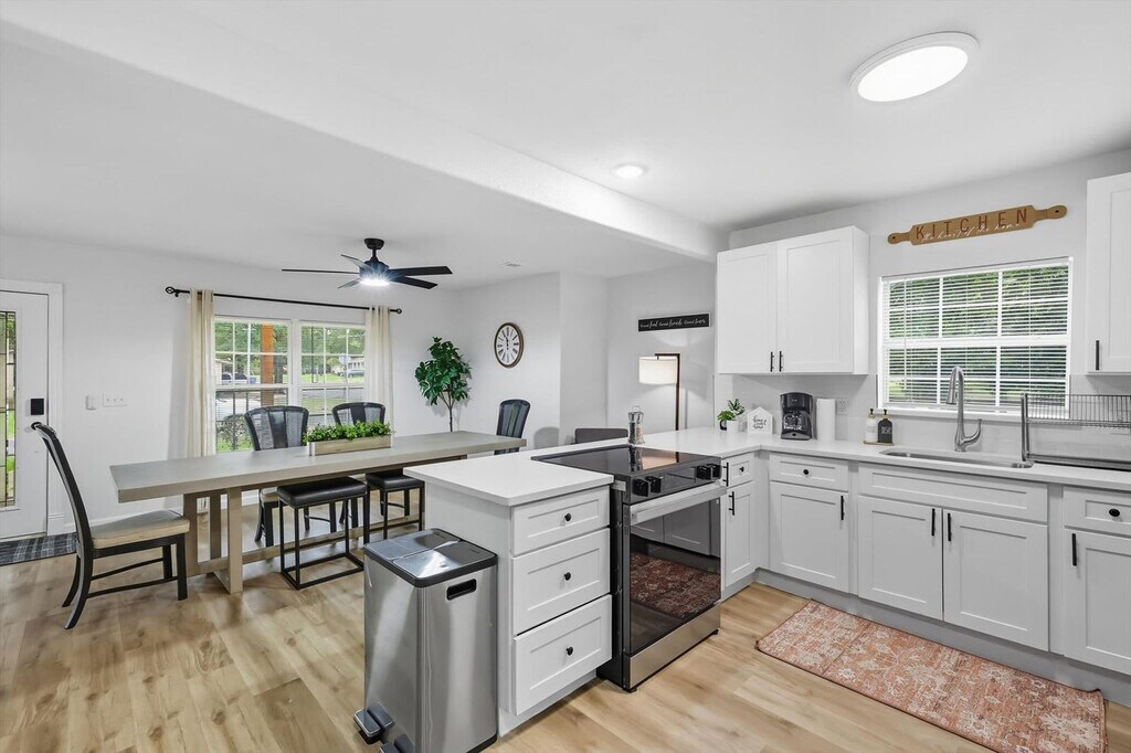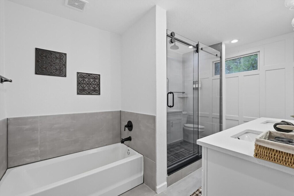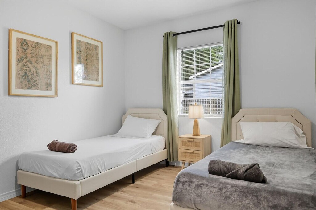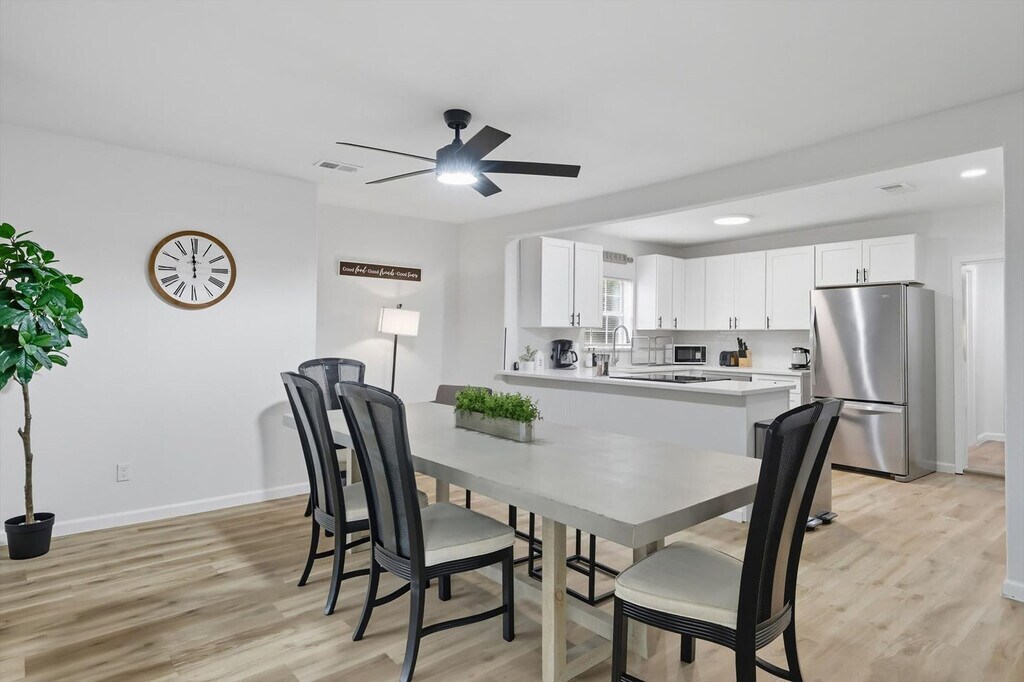 Quiet and tranquil, this adorable cottage is perfect for those looking for a serene escape. Away from the hustle and bustle of busy city life, this 3-bedroom, 3-bathroom country home will allow you to slow down and remember the important things in life. Full of southern rustic charm, this place’s thoughtful furnishings, curated décor, and attention to detail are sure to win you over. The cottage features a fully equipped kitchen, a backyard with a patio and BBQ grill, and sleeps up to 6 guests. This home caters to both short-term and medium-term stays, making it an excellent choice for corporate housing needs. The modern farmhouse kitchen is fully equipped with stainless steel appliances, cooking essentials, and even coffee to start your day right. The dining room features a spacious table with elegant tableware, while the living area offers vaulted ceilings, an oversized sectional, and a flat-screen TV with high-speed Wi-Fi. Each bedroom is a sanctuary of serenity with plush mattresses, TVs, and matching bedside tables and lamps. The bathrooms are sparkling clean and include essential toiletries. Complimentary parking is available to guests and a laundry room with a washer and dryer is provided. Pets are welcome with a non-refundable pet fee of $150 per pet, with a maximum of 2 pets per stay. Pet cleaning fees apply and pets should be kept off beds and furniture. Located in Grayson County, Texas with a richly diverse history, Sherman is situated only 10 miles south of Lake Texoma, one of the largest reservoirs in the state. Well-known for its champion bass fishing, sailing, camping, and hiking, Sherman lives up to its slogan – “classic town, broad horizon”. Nearby attractions include the Sherman Jazz Museum, Kelly Square, 903 Brewers, and Hagerman National Wildlife Refuge. For those interested in exploring Plano, noteworthy attractions are just a 45-minute drive away. We do not allow parties or large unauthorized gatherings on our property. Smoking of any type is not allowed, with violations subject to a $450 fine plus the cost to clean, deodorize, and repair damages. Check-in is at 4pm and checkout is at 10am. Small low-key gatherings are allowed only upon request and approval in advance. Noise levels are monitored to ensure compliance with local ordinances. The cottage is remote work-friendly with high-speed Wi-Fi and a comfortable living area that can double as a workspace. A laptop computer is not included. [SI]