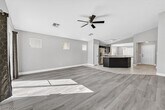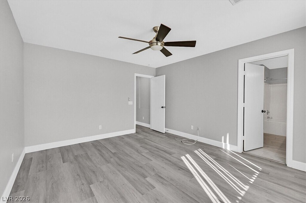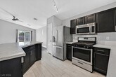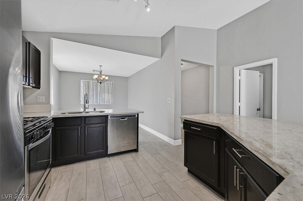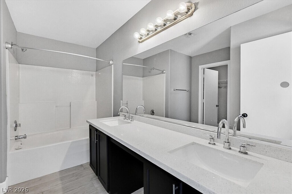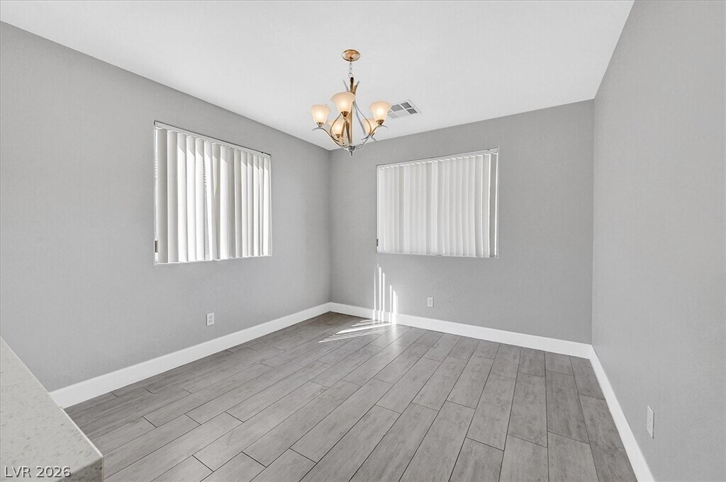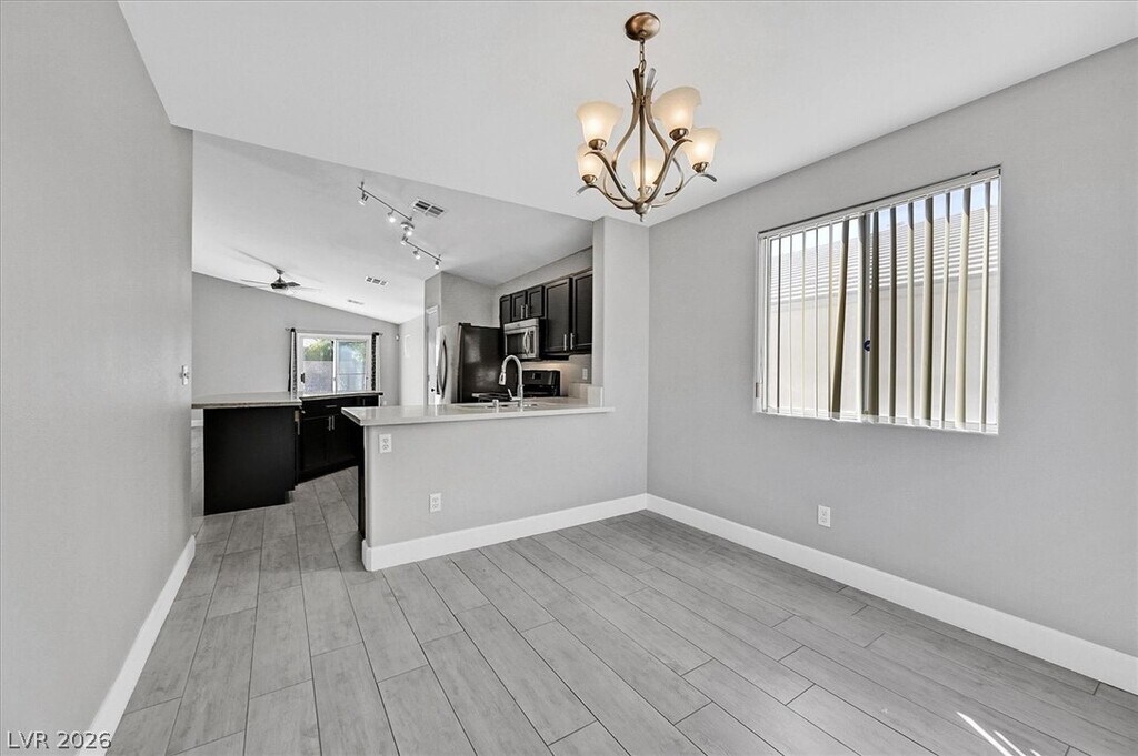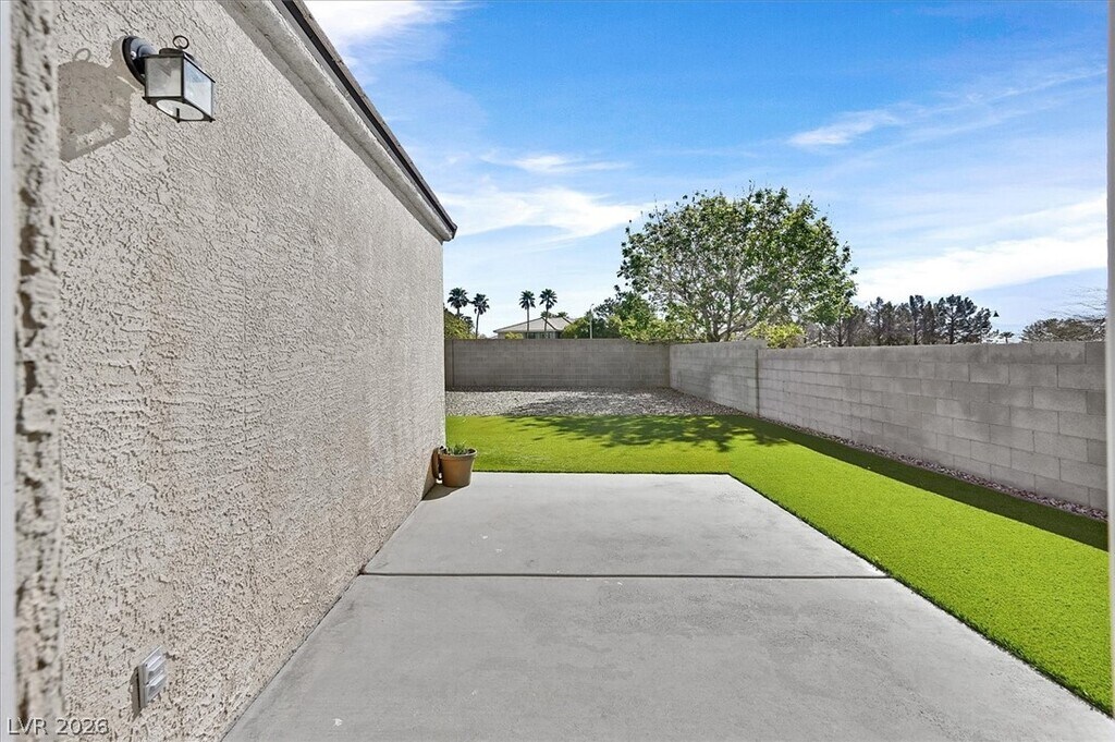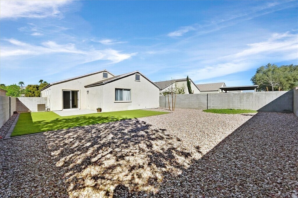 Beautifully upgraded single-story home in The Willows at Summerlin, featuring designer finishes throughout. This open-concept floor plan showcases rich espresso cabinetry, white river granite and white crystal quartz countertops, stainless steel appliances, wood-plank style tile flooring, and vinyl flooring throughout the remaining living areas. The oversized primary suite offers a spacious walk-in closet. Enjoy the large backyard with low-maintenance landscaping, including synthetic grass and desert landscaping.