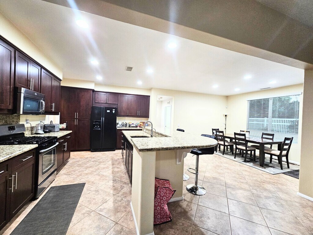 $3395 Rent $3000 Deposit Paseo Del Sol highly upgraded 4 bedroom 3 bathroom 2708 sqft. This gorgeous home features a water filtration system, new water pressure regulator, high efficiency heating & AC units with washable A/C filters, newer water heater. Welcome home you’re greeted by a light and airy open concept featuring high ceilings and custom tile flooring with the spacious living room to your right highlighted with crown molding and an abundance of windows allowing plenty of natural light into the home with great flow. The gourmet kitchen is highlighted with granite counter tops, new cabinets and hardware, soft close drawers and doors, recessed lighting, pantry, large kitchen island with a breakfast bar and opens up beautifully to the dining room with a sliding glass door giving backyard access and the large family room. There is a door next to the pantry that leads you to the laundry room with cabinetry, a sink for added convenience and has a door giving direct garage access. The family room offers a gas starter fireplace, perfect for those cozy nights and oversized widows allowing views of the beautiful backyard. In addition, the main level offers a large bedroom and bathroom located right off the kitchen providing a perfect and private space for guests! The second level features carpet flooring throughout and has a large loft with a built-in desk and storage. The spacious master bedroom and attached bathroom offers dual sinks, granite countertops, new cabinets and hardware, soft close doors, upgraded tile flooring, new plumbing fixtures, new toilets, a soaking tub and a separate shower. The backyard is complete with custom landscaping, an Alumna wood patio cover, drip irrigation, no rear neighbors granting unobstructed views of sunsets, hot air balloons, mountains and is a perfect space for either relaxing or entertaining! The Paseo Del Sol Community is abundant in amenities and is conveniently located just minutes from wine country and Old Town Temecula! Text For Tour - - Apply online and get approved fast. under vacancy. EZ Realty & Property Management Inc. is an equal housing opportunity provider. DRE #01483447