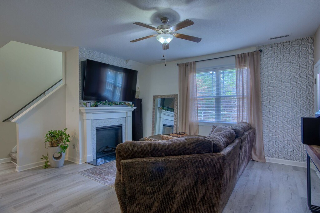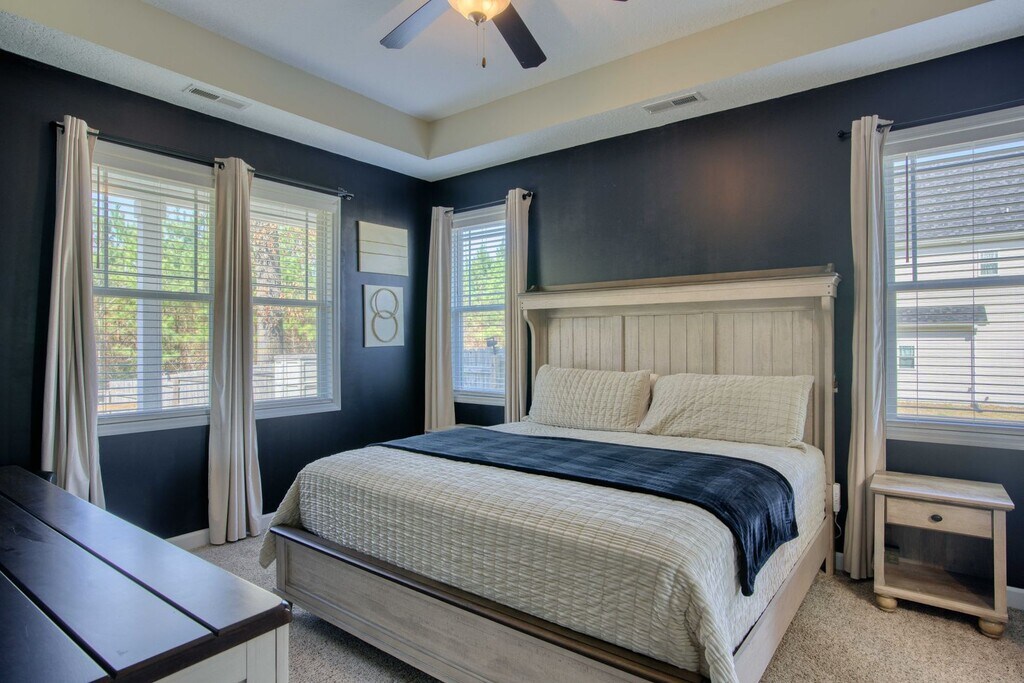 This 4-bedroom, 3-bathroom home is conveniently located just off Piney Green Road, only minutes from the Piney Green Gate at Camp Lejeune. The home features a spacious kitchen with an island, pantry, and plenty of cabinet and counter space. The kitchen opens to the living room, creating a great space for relaxing or entertaining. The primary bedroom is located on the main floor and includes a tray ceiling, dual vanity, and a large walk-in closet. Three additional bedrooms are situated on the opposite side of the home, providing extra privacy from the primary suite. Step outside to a fully fenced backyard with no neighbors directly behind the home. Enjoy the quiet setting from the covered back porch. Additional features include a dedicated laundry room and a whole-home water softener system. Conveniently located near Camp Lejeune, shopping, restaurants, and everyday conveniences. Schedule your showing today!