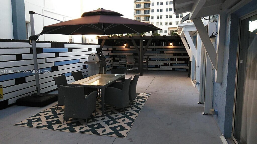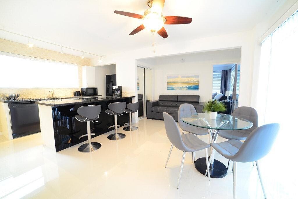 LOCATION! Only steps from the famous Hollywood beach Boardwalk. FULLY FURNISHED. Spacious 1 bedroom apartment comes with a sleek stylish vibe and contemporary comforts. Room for 4 guests. A chic light-filled master bedroom that sleeps 2 comes with a plush Queen size bed and crisp white linens. 2 guests can also sleep comfortably on a full-size sleeper sofa in the living room. Head to the beach and take our extra beach chairs and umbrellas. Fully-equipped kitchen stocked with tableware, cookware and modern appliances. Steps away, a glass top dining table with seating for 4 offers a relaxing spot to share dinner. Secluded common area with patio tables and wicker furniture and BBQ. A washer and dryer are also available for use in a shared laundry room. 1 Parking space MLS # A11965997
