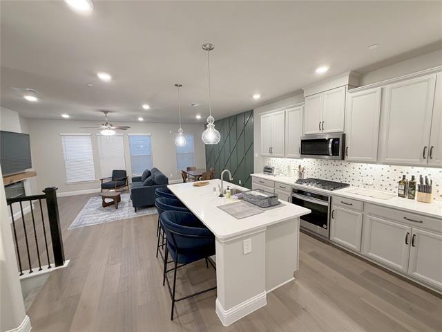Be the first to live in this fully furnished townhome offering 2,068 square feet of modern comfort across three spacious levels. Built in 2025 and never occupied, this residence delivers turnkey living with elevated finishes and functionality throughout. Smart, Flexible 3 Story Layout. Expansive living and dining space is positioned adj to the primary suite, allowing for true single-level convenience when desired—wake up and walk out to enjoy your morning coffee without changing floors. Living area features: Mounted 75 inch LG TV, electric fireplace, comfortable sofa and seating, dining table w 4 chairs. The 3rd bedroom includes a private balcony. Everything you need is already here: King bed & two queen beds, including bedding and towels; sofa & living room furnishings; Washer & dryer; laundry folding table; double door fridge, oven, microwave, toaster oven; kitchen utensils, plates, and silverware; cleaning supplies, vacuum, swiffer mop, toilet paper, shampoo, body wash, hand soap; cooking spices and oils Simply bring your suitcase. Community & Location Advantages: Minutes from Pres George Bush Trnpk (PGBT) with quick access to US-75 and the Dallas North Tollway; small dog park; children’s jungle gym & play area; community gathering fire pit; HOA-maint lawn for low-maint living Ideal For: Corp relo, traveling professionals, families in transition, or anyone seeking a brand-new, fully furnished home in a prime North Dallas corridor. This is a rare opportunity to lease a never-lived-in 2025 build with premium furnishings, flexible space, and effortless connectivity. Ready for immediate occupancy.