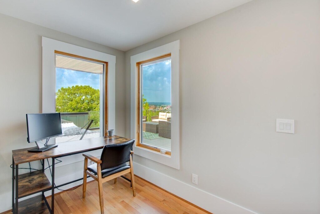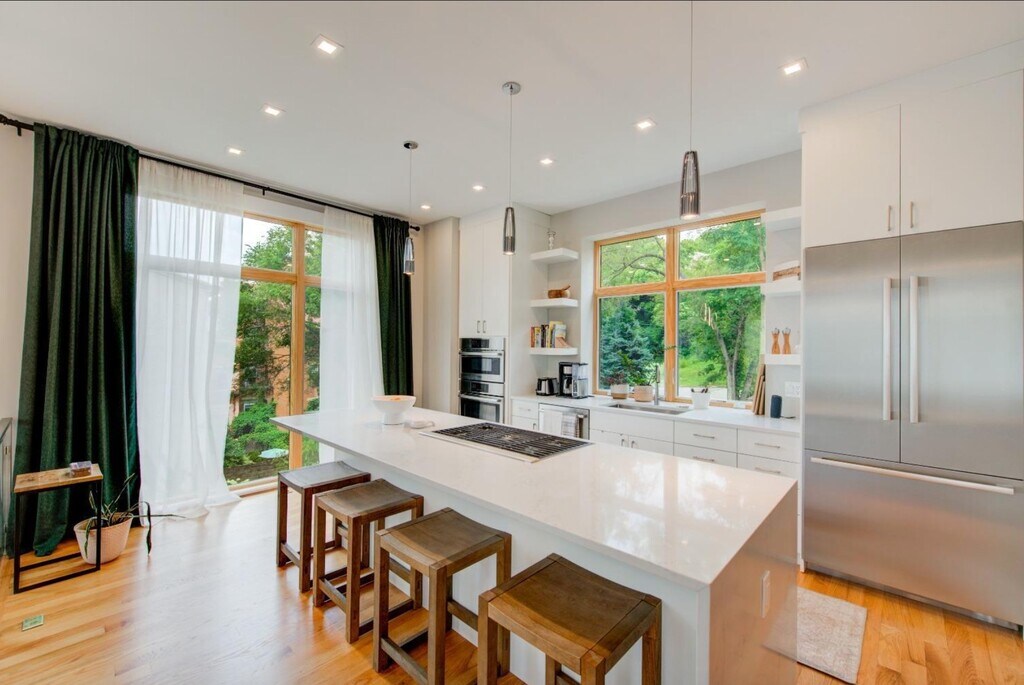 Incredible location w/ spectacular views from roof-top deck! 3 bed,3.5 bath, which could also be used for your office needs. Open floor plan living & kitchen with quartz waterfall island, Bosch & Wolf appliances, pantry & walkout to balcony. Enjoy primary suite w/built-in bookcase, walk-in closet, double quartz vanity & walk-in shower. Lg roof-top deck w/hot tub hookup & grill gas line for your convenience & enjoyment. Garage is wired for electric car charger.Close to restaurants, bars, shoppes!