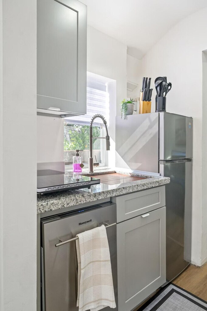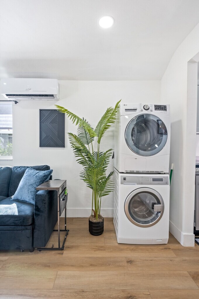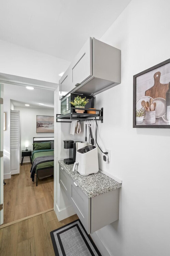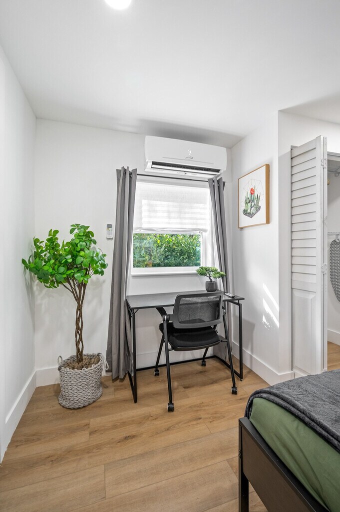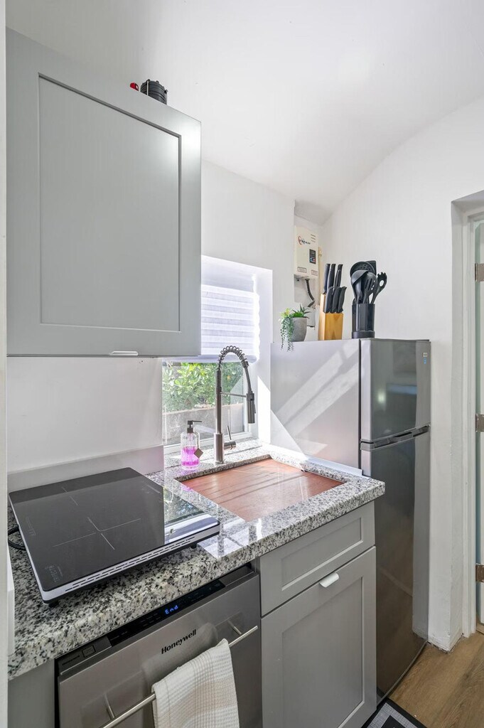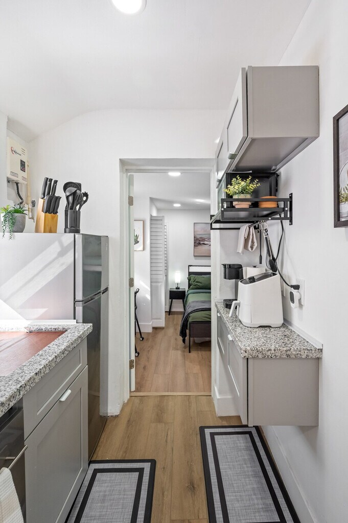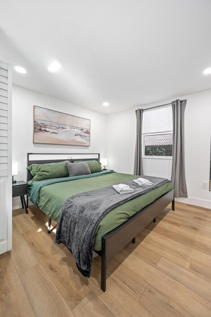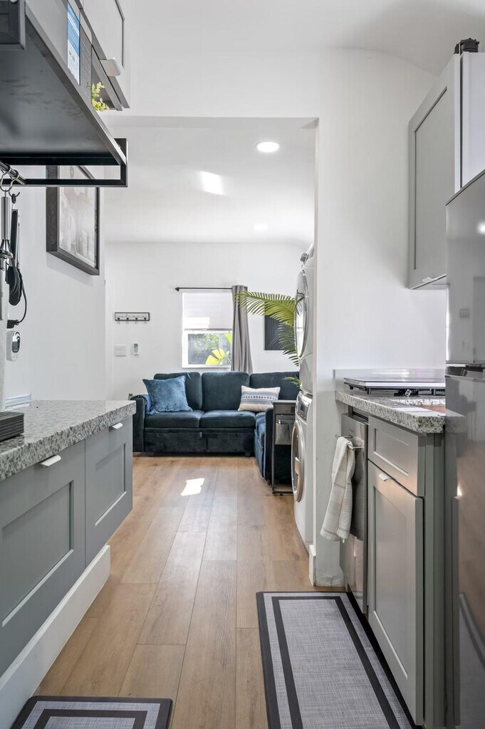 Feel at home in this bright and modern 1-bedroom house north of the Design District in Miami. This property can accommodate up to 2 guests comfortably and includes gated parking. Casa Magic comes equipped with everything you will need to enjoy your time, including a fully stocked kitchen with stainless steel appliances, air fryer, washer/dryer, coffee maker and Keurig k-cup coffee maker with pods, toaster, dishes, glasses and mugs. The beautiful living room features a 55" smart TV with streaming apps and a reclining sofa. There is also a cozy dining area and a full bathroom with a luxurious rain showerhead, shampoo, soap, and towels. Interior parking is available in the driveway. This apartment is located 7 minutes from Wynwood, the Design District, and Midtown, 15 minutes from South Beach, 10 minutes from MIA airport, and 12 minutes from Brickell. Guests have complete access to the house and a private outdoor space in the backyard. The property has a principal separated house that is a mid-term rental but it's separate and private from this main house. Your rental is 100% private with its own private entrance and private backyard space! Check-in and check-out are made easy with smart, keyless entry. There is a security camera system on the exterior of the home for additional peace of mind during your stay.