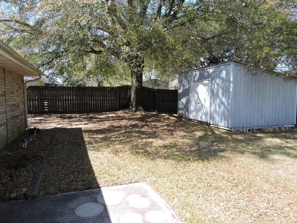 South OF I-10! Close to everything!! All brick, 3/2/2, 1892 sf. on a flat lot! Tiled front porch, foyer, family room, hallway & laundry. Hardwood in formal dining & office, pergo flooring in kitchen & breakfast area, and carpet in bedrooms only. Popular split floor plan with formal dining, formal living/office/den as you enter house, large family room, kitchen, breakfast room and inside laundry. Master bedroom has two walk-in closets; large master bath w/two vanities, large linen closet. Large breakfast bar in kitchen, smooth-top stove, refrigerator w/ice maker, dishwasher. Privacy-fenced back yard, outside workshop, additional pad poured for boat, motor home. Schedule your private showing today!