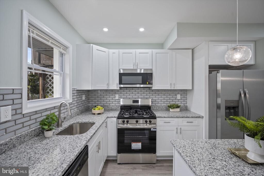 Welcome to 328 S Macon St, this beautifully renovated home offers 3 bedrooms, 3.5 bathrooms, and modern upgrades throughout. Step inside to an open-concept main level with brand new flooring, freshly painted walls, and a spacious living area perfect for relaxing or entertaining. The kitchen features granite countertops, stainless steel appliances, and plenty of cabinet space. A convenient half bath is also located on the main floor. Upstairs you’ll find two bedrooms, each with its own private full bathroom, offering comfort and privacy. The fully finished basement includes a third bedroom and another full bathroom, ideal for guests or additional living space. Outside, the fenced backyard offers a private parking pad a rare find in the area! Located just minutes from Patterson Park, Canton Square, Johns Hopkins, shops, restaurants, and major commuter routes, this home checks all the boxes. Move in ready and fully renovated don’t miss your chance to call this home!