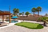 Welcome to the Ace of Oasis, a light-and-airy vacation home with private backyard, pool, and view of the mountains! Home is centrally located and within minutes to Lake Havasu, golfing, casino, and the London Bridge dining and entertainment district. Don’t feel like leaving the house? Enjoy the in-ground pool (heat optional), in-pool tanning ledge, lighting effects, custom hot-tub, shaded patio, BBQ grill, and Foosball. Relax inside with modern decor, internet, and Smart TV’s in every room. This home is perfect for a serene or adventurous vacation getaway! Located in a quiet residential neighborhood, this spacious home features convenient amenities and modern furnishings for a comfortable stay. LIVING SPACE Living room: Large sectional, spacious desk, board games, and 55-inch Smart TV, streaming, Netflix. Dining space: Open to the living room and kitchen, table, 4 chairs, and bench. Kitchen: Fully equipped, open shelf pantry, stocked with coffee, condiments, toaster, blender, rice maker, and other cooking, baking, and dining essentials. Bathrooms: Conveniently located in hallways on both sides of living space adjacent to bedrooms, one with walk-in shower, double vanity, the other with tub/shower combination, single vanity. Laundry: Washer and dryer in garage, laundry supplies. BEDROOMS Primary Bedroom: King bed, fold-down double futon, TV, private from other bedrooms. Bedroom 2: Queen bed, TV. Bedroom 3: Two twin beds and 2 twin trundle beds, TV. Extras: Hangers and storage bins in each closet, pillows, blankets. OUTDOOR SPACE Full-walls for backyard privacy Custom in-ground pool with sun shelf (shallow area of pool) for lounging or young children. Pool features a built-in table and umbrella for shade, options for colorful pool lighting, and option to heat pool. Custom in-ground spa hot-tub. Large covered patio with dining area, lounge chairs. BBQ grill, foosball table, ladder ball game and spacious yard areas for kids PARKING Garage 2-car parking with one side extra deep, driveway, and gated parking on both sides of the house. You will have access to the entire home. Parking for boats, trailers or RV’s is on the side of the house behind the locked coded gate. No boats in garage, only cars or small water crafts. RV hook-up for electricity and water is available, $25 fee per day. We want your vacation rental experience to be memorable and convenient. Keeping a comfortable and clean property is what is most important to us. We will be available anytime via messenger to answer any questions or concerns. We take the approach of being hands off on the property unless needed - we want you to feel like you have the home all to yourself! This home is located in a quiet residential neighborhood. Parties, loud music, and high-volume noise is prohibited. This home is an opportunity to experience being part of a community and taking part of the lifestyle in Lake Havasu. This home is located close to all Lake Havasu City attractions but far enough away to have quiet down time. The London Bridge area is about 5-10 minutes away (4 miles). The Lake Havasu State Park is about 10 minutes away (5 miles). There is a grocery/convenience store within 2 miles of the house. Getting around Lake Havasu City is easy and convenient. Most all attractions are within 5-10 minutes away. There is Uber services available, if needed. Please be responsible! RESERVATIONS Must be 25+ years old to book. A $250 - $500 deposit may be requested for bookings and holidays. No unauthorized guests allowed, only those on reservation. Any stay over 30-days requires a separate rental agreement. NO EVENTS OR PARTIES Quiet hours are strictly enforced from 10 pm to 7 am (includes loud voices and music). This home is in a residential area and parties will be shut down immediately or you will be asked to vacate the property without a refund. SECURITY CAMERAS Located at front entrance, driveway, back yard surveillance of pool and equipment, and in garage. No cameras inside of home. Purpose is to prevent parties and misuse of pool or tampering with equipment. Rental agreement immediately terminated without a refund for camera tampering and $500 fine. PETS Sorry, this is not a pet friendly home If pets are brought there will be a $200 fine NO SMOKING AND VAPING Absolutely no smoking or vaping inside the home. Minimum $200 fine. Smoking is only permitted outdoors (with closed windows and doors). USE OF POOL AND SPA Pool cleaner comes 1-3x a week through the side gate to clean the pool, which takes a few minutes and they will not interrupt your stay. No glass or food in or around the pool. If the pool needs to be drained as a result of this violation it will be at the expense of the guest. Do not remove the vacuum from the pool – it can disrupt the system. Do not touch the propane tank or pool/spa equipment. Minimum $500 fine for the pool company to re-set or repair equipment. POOL HEATING >$125/day to heat the pool (full stay required) >It can take 1-2 days to heat the pool so we need advanced notice >Spa heating included in booking amount ... increased price in winter months (November to March) -- if the stay exceeds 5 days, there is an additional $15/day charged for unlimited spa usage CHECK-INS AND CHECK-OUTS Early check-in or late check-out, if available, may be an additional fee. For items left behind, a $10 service charge is added to the shipping rate. BBQ GRILL We try to keep our BBQ propane tanks full, but we aren't always sure. If you have to go fill the tank, please send us the receipt so we can reimburse you. TPT#21370618 Vacation Rental Permit#011548 CREDIT CARD PROCESSING FEES Note: When making a reservation through our website or when using credit card payment there is a 4% credit card processing charge that is paid to Stripe (the credit card processing company). If AT ANY TIME there is a cancellation, the 4% charge is not refunded. DAMAGE PROTECTION The extra charge listed as “Waivo Insurance” on your reservation cove