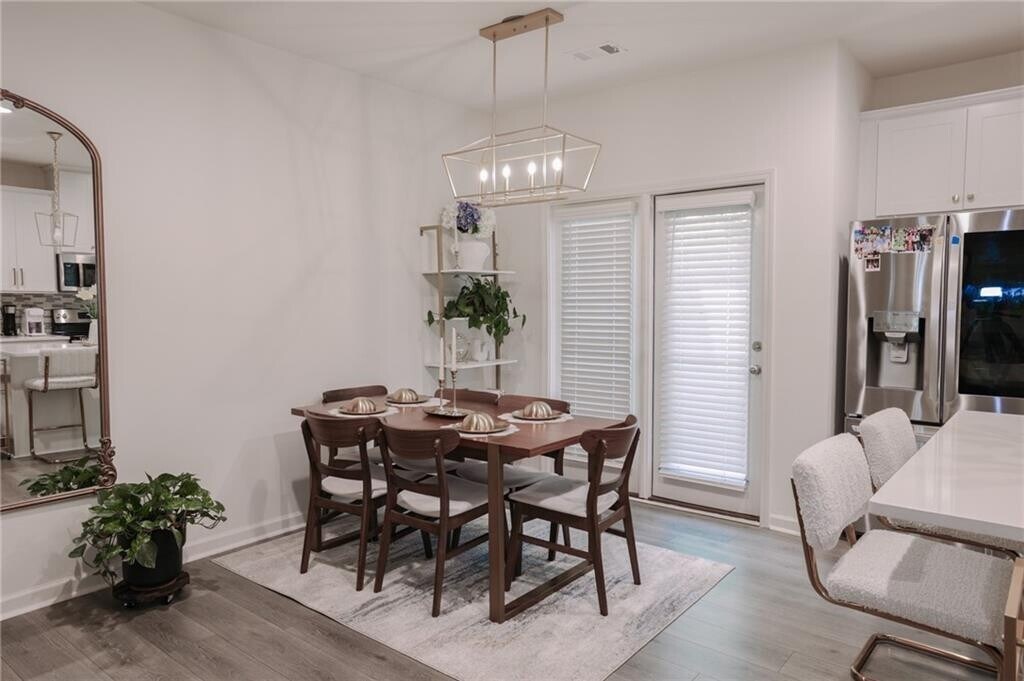 This stunning home features an open floor plan with hardwood floors,a chef’s kitchen with granite countertops,stainless steel appliances,and a large pantry. The spacious living area includes built-in shelving and a cozy fireplace. Upstairs,the primary suite offers a walk-in closet and spa-like bath with double vanity and tile shower. Enjoy a fenced backyard with a concrete patio — perfect for entertaining. Conveniently located near shopping,dining,and quick access to I-85/I-285.