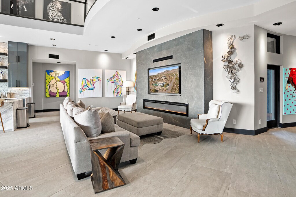 Gorgeous one-of-a-kind Desert Contemporary Estate. This is an entertainers dream situated on 1 acre mountainside with stunning Camelback,city light,sunset & mountain views! This home was originally custom-designed by John T. Pela and built with steel & masonry block and is fireproof! The 21 foot ceilings create a dramatic museum feel in the open great room with a custom wet bar looking up to the upstairs loft. Unbelievable sunset views-The builder designed to home around the beautigul AZ sunsets. The home features a courtyard entry multiple patios & balconies,a full size tennis court and detached casita. First floor master with his & her walk-in closets. NO HOA! Less than five minutes to great shopping at Biltmore Fashion Park & some of the best hiking trails in Phoenix.