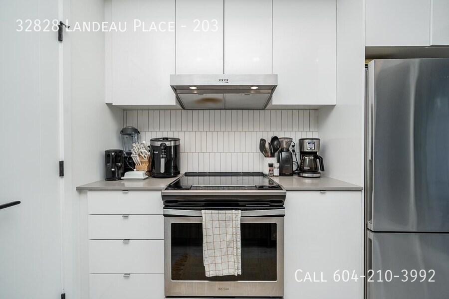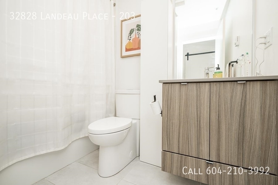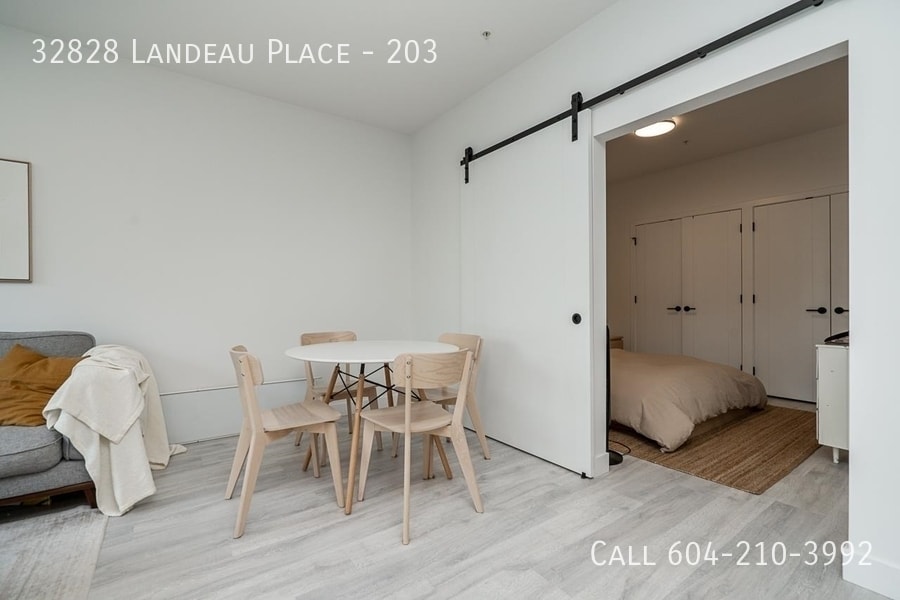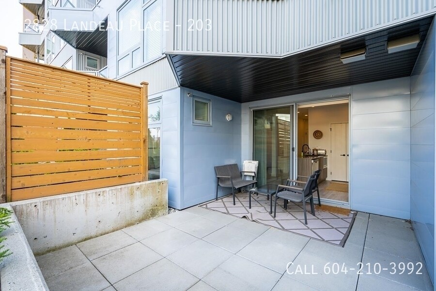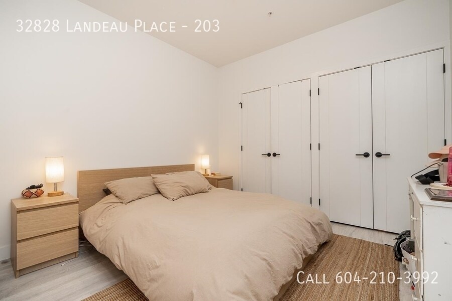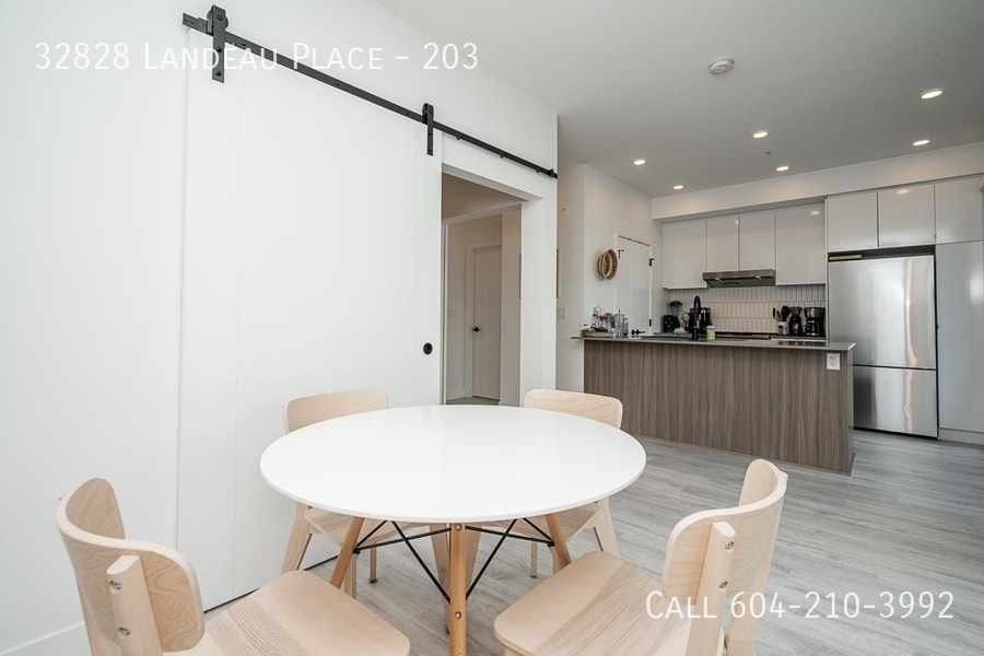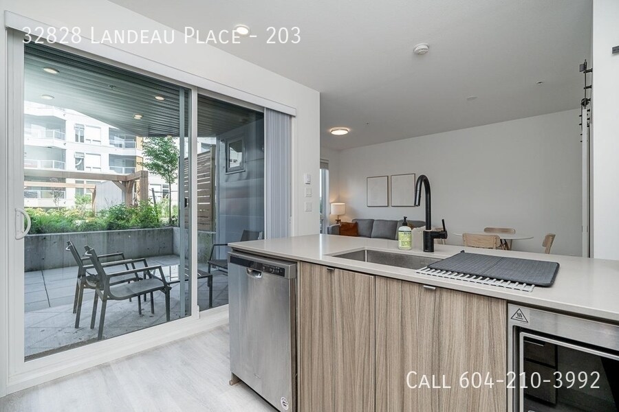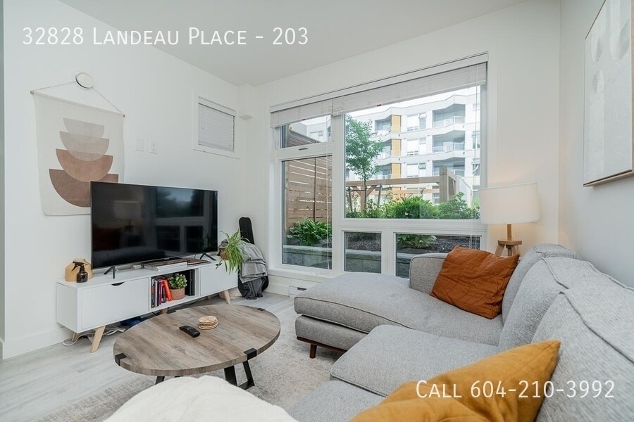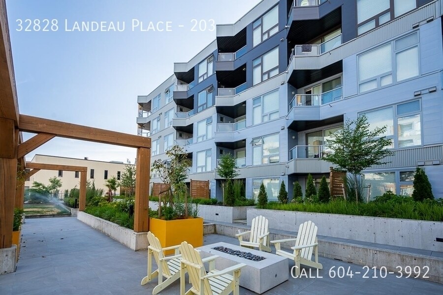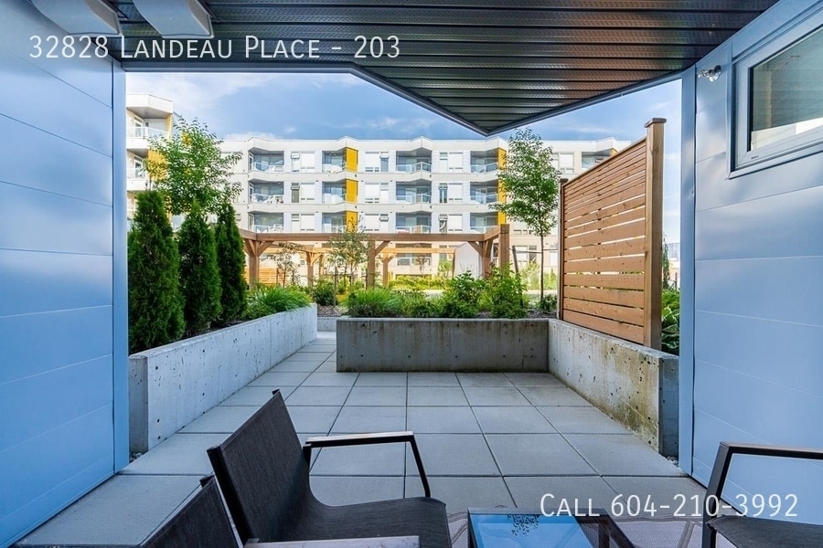 One Year Lease Required Security Deposit: Half Months Rent Bright modern 1 bedroom on the quiet side facing east to the beautifully landscaped courtyard. Relax with friends on the huge partly-covered 204 sq ft terrace -adding 1/3 of the size of the home to the living space! Features 2 side-by-side full-size secure parking stalls, common EV charging, large corner locker & bike room. Enjoy a Scandinavian-inspired interior, high ceilings, open plan, wide-plank flooring, spacious kitchen w/eating bar, stainless appliances, quartz counters, Fisher & Paykel fridge, in-suite laundry & storage room. Have fun in the courtyard w/picnic benches, lounge seating, fire pit, fitness space, & outdoor theatre for evening movies. Walk to Sevenoaks shopping, Mill Lake, trails, restaurants & transit. Please call Ace Property Management at - Ext-1 to book a viewing. Reference the address: “#203 32828 Landeau Place, Abbotsford”