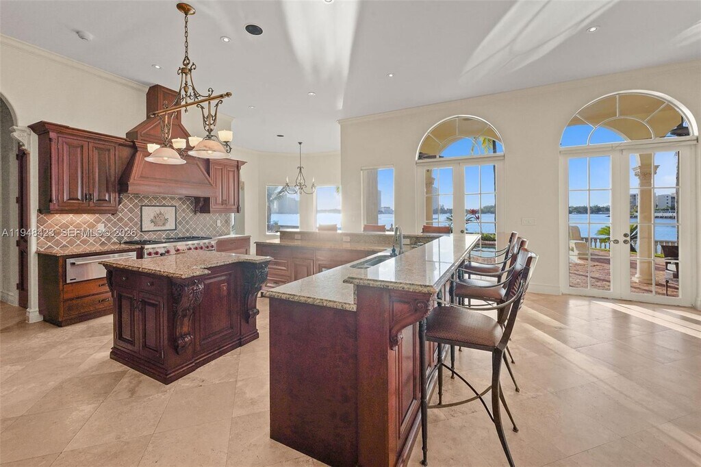 Waterfront point lot with spectacular views, with a grand home boasting high ceilings and large, spacious rooms. This sprawling home is perfect for entertaining and family-friendly, with an extra-large kitchen, an open floor plan, and water views. The entertainment extends into the backyard with a pool and bar area. The private dock has easy access to the Intracoastal and can accommodate larger boats without blocking the view from the home. The garage is spacious, and the property is gated. The home is a must-see. Unfurnished, freshly painted inside and out, it is available for immediate occupancy. Close to shops and restaurants. Great location. MLS # A11948423