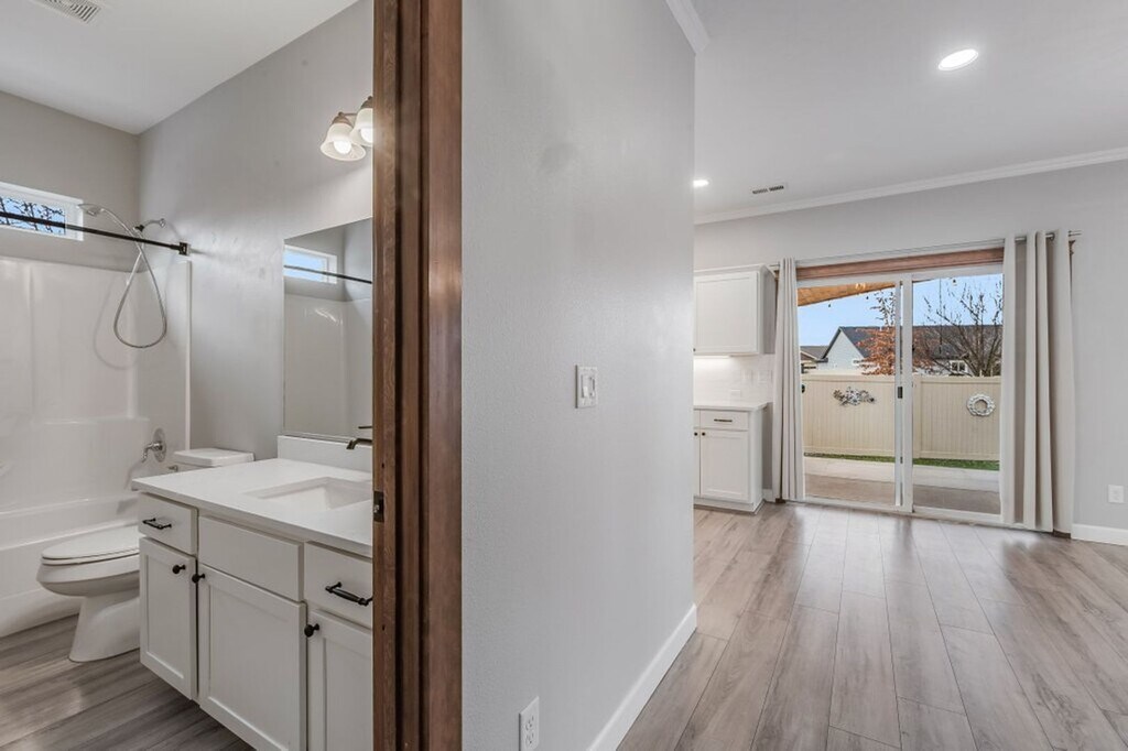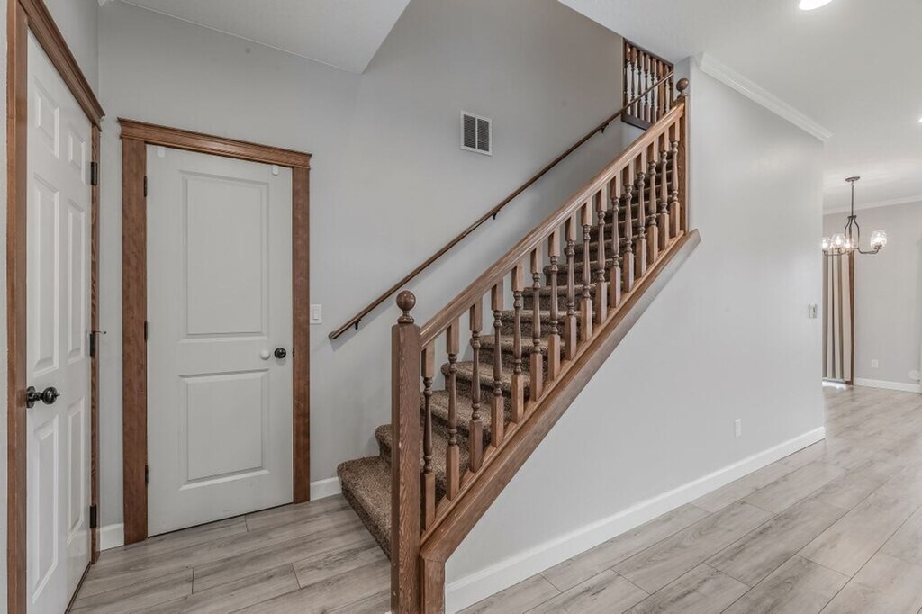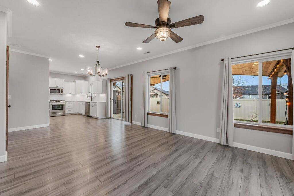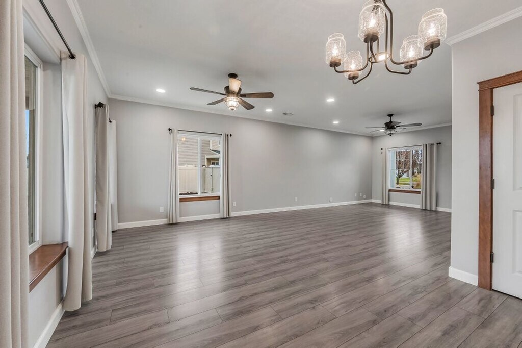 This 2,070 square foot home is centrally located in Post Falls close to schools, shopping and HWY 41. Main floor has 9 ft ceilings, luxury vinyl plank flooring with an open concept. Large living room and dining area with kitchen. Kitchen is fully equipped with stainless steel appliances, quartz countertops and a pantry. One bedroom and full bath. Main floor has a slider door that opens out to the fully covered, extended patio, fire pit and fenced yard. Yard has sprinkler system front & back with 2 storage sheds. Upstairs has a primary bedroom with vaulted ceilings, en-suite bathroom with walk in closet and double vanity. 2 additional bedrooms, hallway bathroom and laundry room. Washer & dryer are included but are complimentary items (will not be replaced or repaired). 3 car garage has one bay converted to a fully finished office. 2 parking bays, extra shelving for storage. Rent is $2,795/month with a 6 or 18 month lease required. Tenant pays all utilities separately. Tenant is responsible for all lawn care & snow removal. (1) dog might be ok with owner approval. No dog under 2 years old, no dog over 40 lbs and no aggressive breeds. $500 refundable pet deposit and $50 monthly pet fee required. Visit our website to join one of our open house showings or apply on-line. 650+ credit score no co-signers