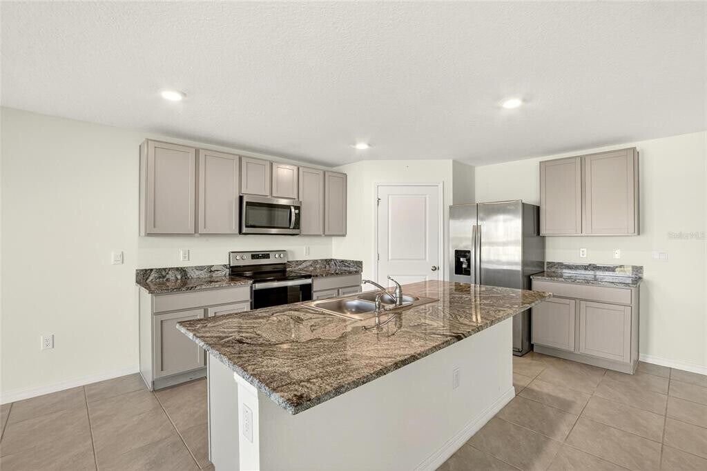 Spacious 5-bedroom,3-bath home offering 2,674 sq ft of living space with a flexible floor plan and scenic pond view. The first floor features an open concept kitchen with granite countertops,stainless-steel appliances,and a large island overlooking the dining and living areas. A flex space on the main level provides options for a home office or playroom,and a guest bedroom with full bath offers convenience for visitors or multigenerational living. Upstairs includes a large loft,perfect for an additional family area or media room,and a primary suite featuring two walk-in closets and a private ensuite bath. Three secondary bedrooms and another full bath complete the upper level. Enjoy outdoor living in the extra-large,fenced backyard with peaceful pond views. The home also includes a two-car garage and energy-efficient features throughout. Located in a resort-style community with amenities that include a clubhouse,pool,playground,dog park,basketball courts,and tennis courts. Ideal for those seeking space,comfort,and community living in a desirable location. Available for immediate occupancy. Call today for Private showing. MLS# TB8445857