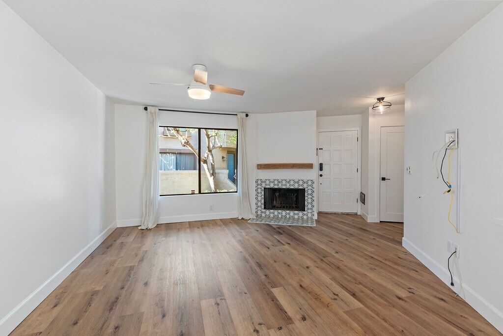 This beautifully updated townhouse offers the perfect blend of modern design, natural light, and an unbeatable La Jolla location. The open-concept living space is filled with sunlight and features wide-plank flooring, a designer-tiled fireplace, and seamless flow ideal for both everyday living and entertaining. The renovated kitchen is thoughtfully designed with quartz countertops, stainless steel appliances, custom cabinetry with brass hardware, open wood shelving, and a farmhouse sink overlooking the patio. Just off the dining area, large sliding doors open to an expansive private patio—perfect for outdoor dining, relaxing, or entertaining guests. Upstairs, both bedrooms offer natural light and both bathrooms have been tastefully remodeled with modern vanities, matte brass fixtures, and a spacious walk-in shower with designer tile and pebble stone flooring. One bedroom features vaulted wood-paneled ceilings and abundant natural light, creating a warm and inviting retreat with private patio. Additional highlights include a private two-car garage with direct interior access, in-unit laundry, modern lighting throughout, and excellent garage storage. The home is located in a well-maintained community just minutes from UCSD and the shopping, dining, and entertainment options at University Town Center, with easy access to beaches, freeways, and coastal amenities. A rare opportunity to enjoy stylish, low-maintenance living in one of La Jolla’s most convenient locations. 12-16 month lease, Tenant to pay all utilities which are billed separately; SDGE Gas and Electric and Cable provider of choice, renters insurance required. Price, terms, offerings, availability subject to change. All information deemed reliable, tenant to verify all.
