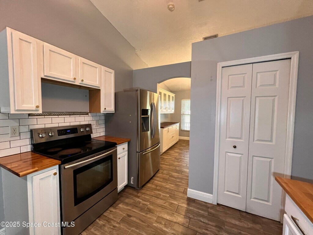 Check out this beautiful home located in North West Palm Bay. The features of this home include: three bedrooms,two bathrooms,formal living room,formal dining room,family room,eat-in kitchen with breakfast bar,butcher block countertops with stainless steel appliances and pantry. The owners suite includes a spacious walk-in closet,walk-in shower,garden tub and double sinks. Enjoy a fenced porch,two-car garage,and convenient access to shopping,dining,and major roadways. Make your appointment today!