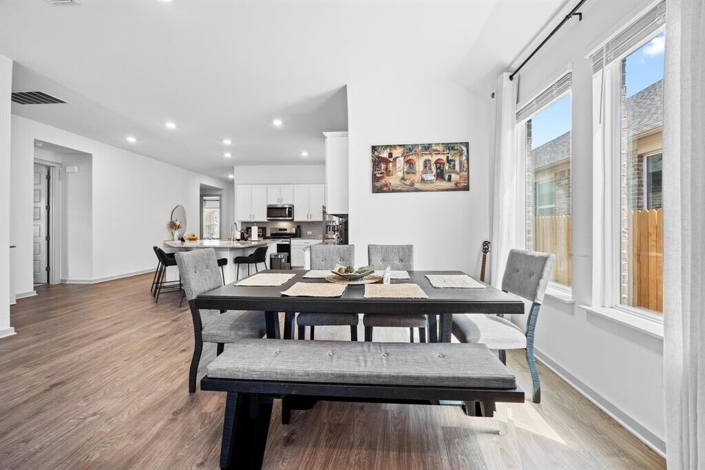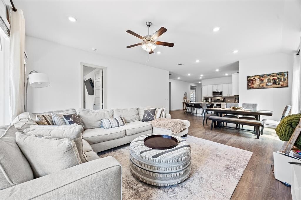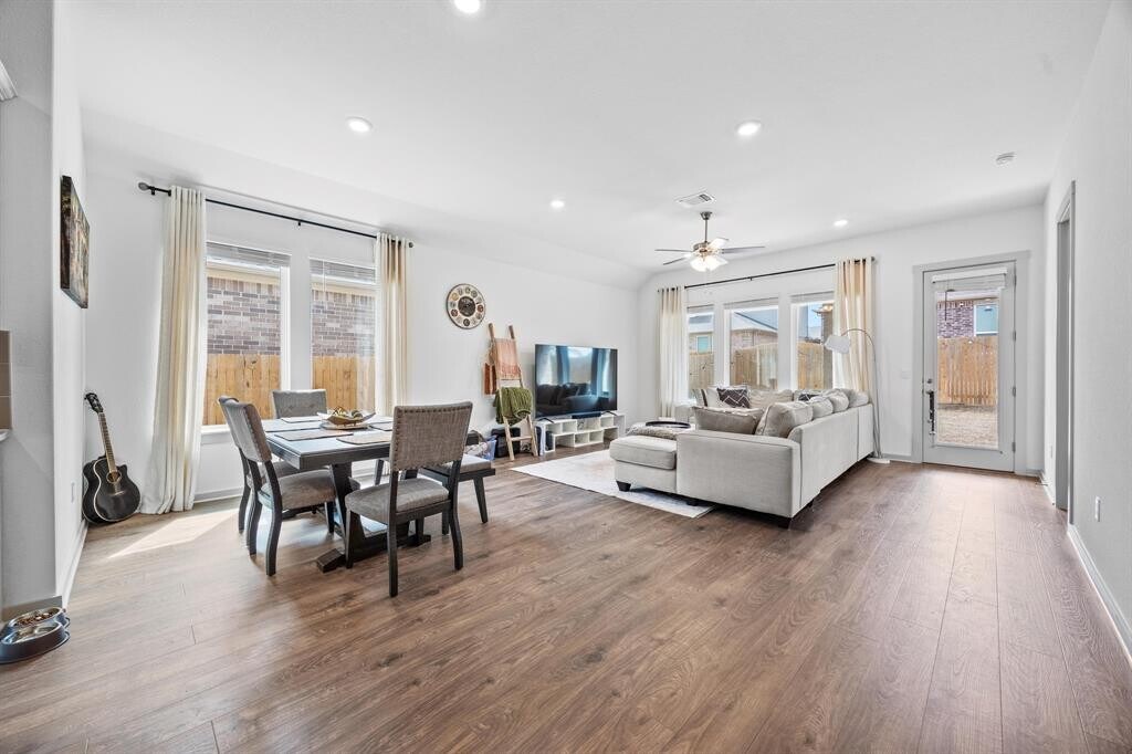Beautifully designed single-story home in Leander offering 4 bedrooms, 2 bathrooms, and 2,105 sq. ft. of thoughtfully laid-out living space. Built in 2023, this home features four sides brick construction, an impressive 8-foot glass front door, and 8-foot interior doors throughout, creating a clean, modern feel from the moment you walk in. The open-concept layout seamlessly connects the kitchen, dining, and living areas—ideal for both everyday living and entertaining. The kitchen is the true centerpiece, featuring an oversized island, generous prep and serving space, and plenty of room to gather. The spacious living area is filled with natural light and overlooks the oversized covered patio, perfect for relaxing or hosting. The primary suite is tucked away for privacy and offers dual vanities, a large walk-in shower, and an oversized closet. Two secondary bedrooms and a full bath are positioned in a separate front wing, while the fourth bedroom offers flexibility as a home office, guest room, or bonus space. Additional highlights include an oversized utility room with extra storage and a layout that truly makes sense for how people live. Located in a desirable Leander community, this home blends modern finishes with everyday functionality. MLS ID 8057205