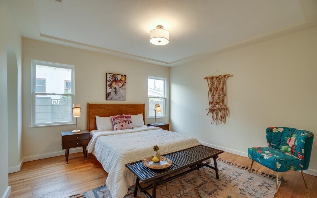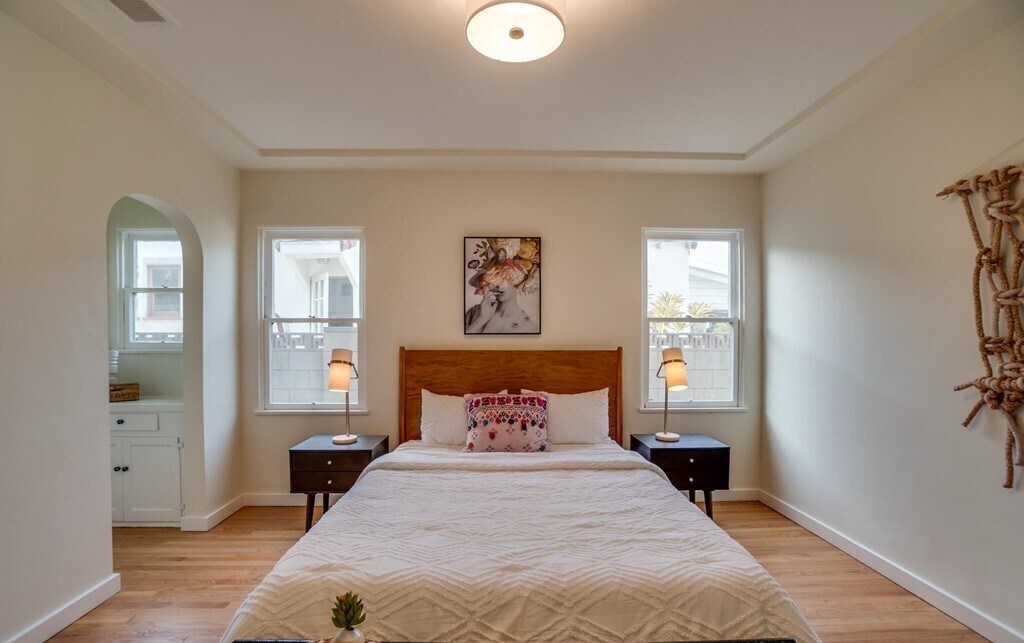 Nestled on a quiet, tree-lined corner lot, this beautifully remodeled 3-bed, 2-bath residence offers 1,522 sq. ft. of living space with timeless character and modern updates. Built in 1938, the home features original hardwood floors, abundant natural light, and a classic fireplace. The spacious dining room flows into a galley-style kitchen with Spanish tile, quartz countertops, ample cabinetry, and a cozy breakfast nook. Enjoy seamless indoor-outdoor living with direct access to patios and backyard spaces ideal for entertaining. Additional highlights include original built-ins for storage, dedicated laundry, and a 2-car garage. Located in the highly desirable Almansor Park neighborhood of Alhambra, this property combines historic charm with everyday convenience.