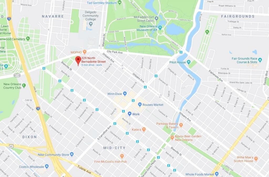 Located in the Mid-City Neighborhood, 329 N Bernadotte St is in the 70119 Zip Code of New Orleans, LA.