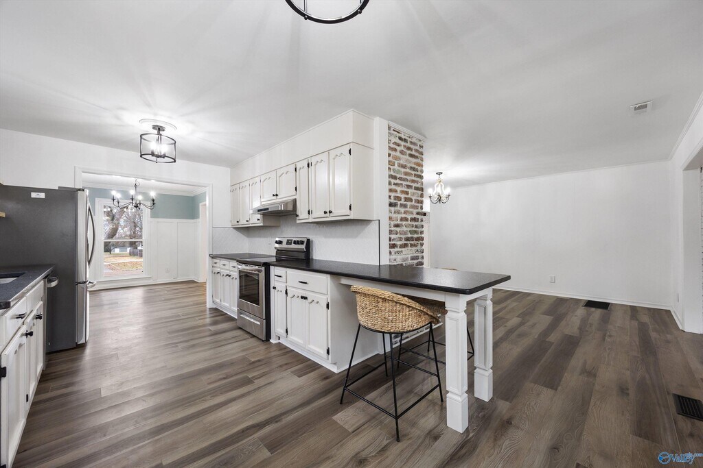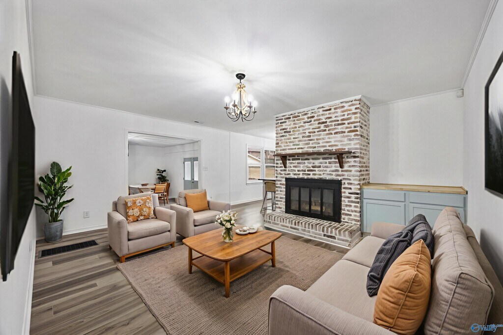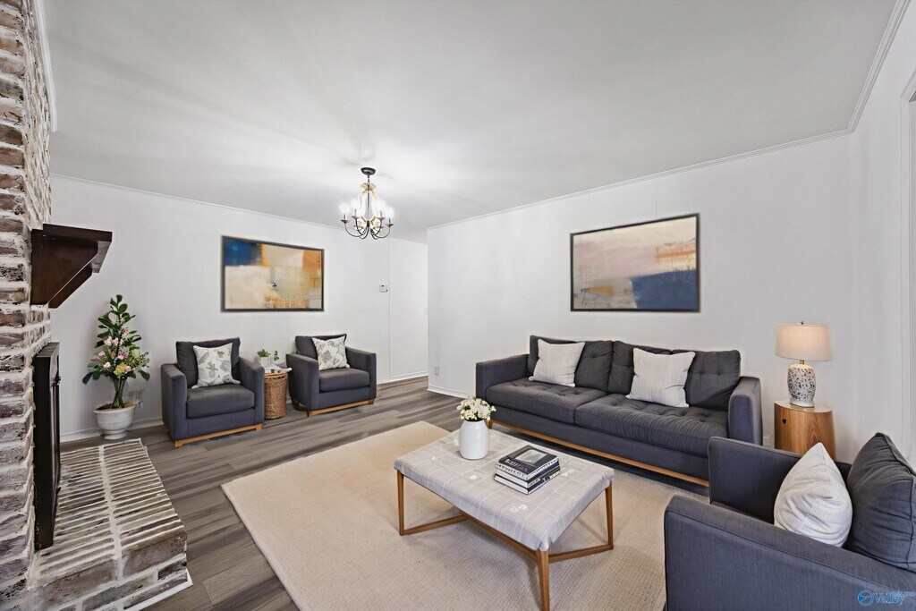 Great fully redone home in quiet neighborhood in South Huntsville neighborhood. This home features THREE large living spaces,and stylish updates. Cozy up around the fireplace in the family room or gaze out the window in the formal living room at the front of the house. A formal dining room with large windows offers convenience connected right to the kitchen and lots of natural light. The OVERSIZED bonus room features TONS of storage space! Both bathrooms have been fully redone. Primary suite offers LARGE walk-in tile shower! Wind down in the screened in porch,or in a rocking chair on the front porch. Welcome HOME!