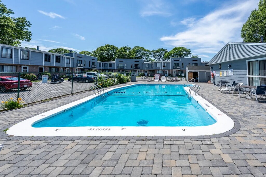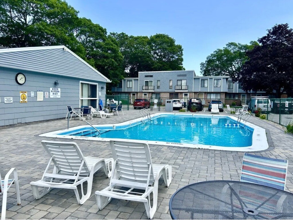 Beautifully updated 2 bedroom, 1.5 bath end unit with extra windows. This bright open concept features spacious living and dining area with sliding glass doors leading to a private back yard. There is brand new flooring in the entire unit as well as new window treatments on all windows. There are two generously sized bedrooms with tons of closet space. There is a sunset balcony off the back bedroom. Kitchen and bathrooms have been updated. There is a finished lower level perfect for a home office or playroom. There is central air, new roof, pool, club house, new paint, new light fixtures and new dishwasher. Washer and Dryer hookups on lower level. Walk to Main Street, Hyannis
