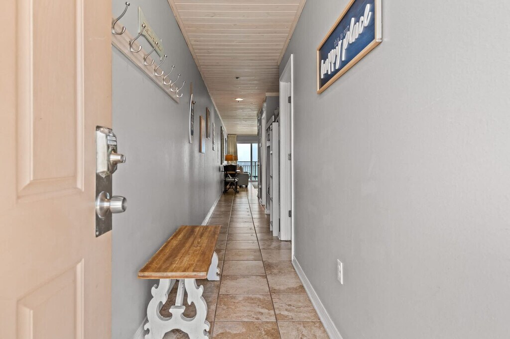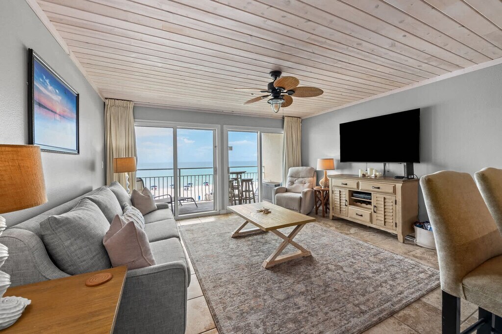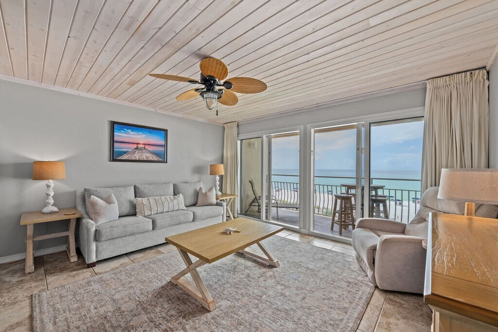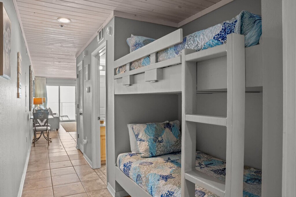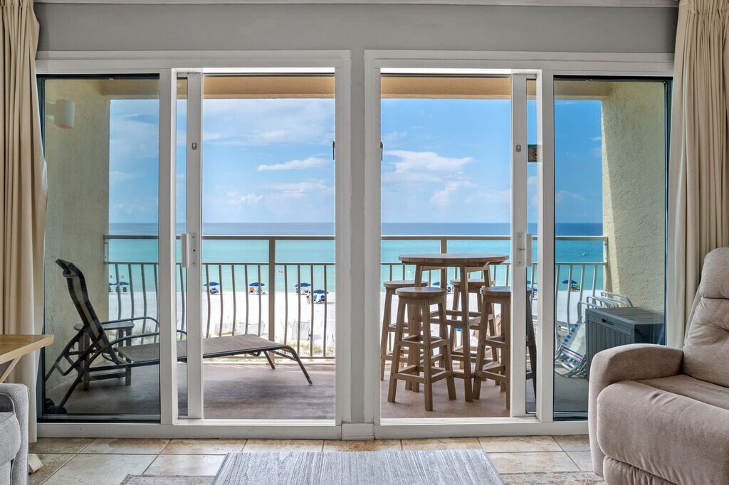 Welcome to "Deja View," where breathtaking views and private beach access await you for a truly relaxing vacation. This spacious 1-bedroom apartment, located in the iconic Crystal Beach neighborhood within the Crystal Sands community, comfortably accommodates up to six guests with hall bunks and a queen sleeper. Enjoy the stunning sunrises and sunsets that will have you feeling that "Deja View" time and time again. The apartment offers both elevator and stairway access, making it a great fit for families and those with mobility considerations. Step into "Deja View" and be captivated by the unobstructed emerald water and sugar sand views. The apartment features a cozy living area with a reclining reading chair and a couch that opens into a queen-sized sleeper. Enjoy entertainment on the 65" Smart TV with cable, perfect for catching up on your favorite shows. The fully stocked kitchen includes a fridge, dishwasher, range, microwave, and more, along with a coffee maker and Keurig machine. A stackable washer and dryer are also available for your convenience. Enjoy complimentary beach service for two, including two chairs and one umbrella, offered seasonally from March to October. The community pool, seasonally heated and located in a shaded area, is available year-round for a relaxing swim. Located in the quiet and family-friendly Crystal Beach neighborhood, "Deja View" offers easy access to local attractions. The private gated beach access is just steps away, ensuring a hassle-free beach experience. While a vehicle is recommended for exploring the area, there are a few restaurants within walking distance. Ride-sharing services like Uber and Lyft are popular, and grocery delivery is available through SHIPT or Instacart. Check-in is at 4:00 PM CST and check-out is at 10:00 AM CST. Early check-in and late check-out are not guaranteed. Pets are not permitted at this property, and only registered guests listed on the reservation are allowed. Events and parties are not permitted, and noise ordinances are in effect at 10 PM sharp. Trailer, RV, box truck, and watercraft parking is not allowed, with towing fees applicable for violations. Guests under age 25 must be accompanied by a parent or guardian, and any unreported issues or damage may result in financial responsibility for guests. [SI]