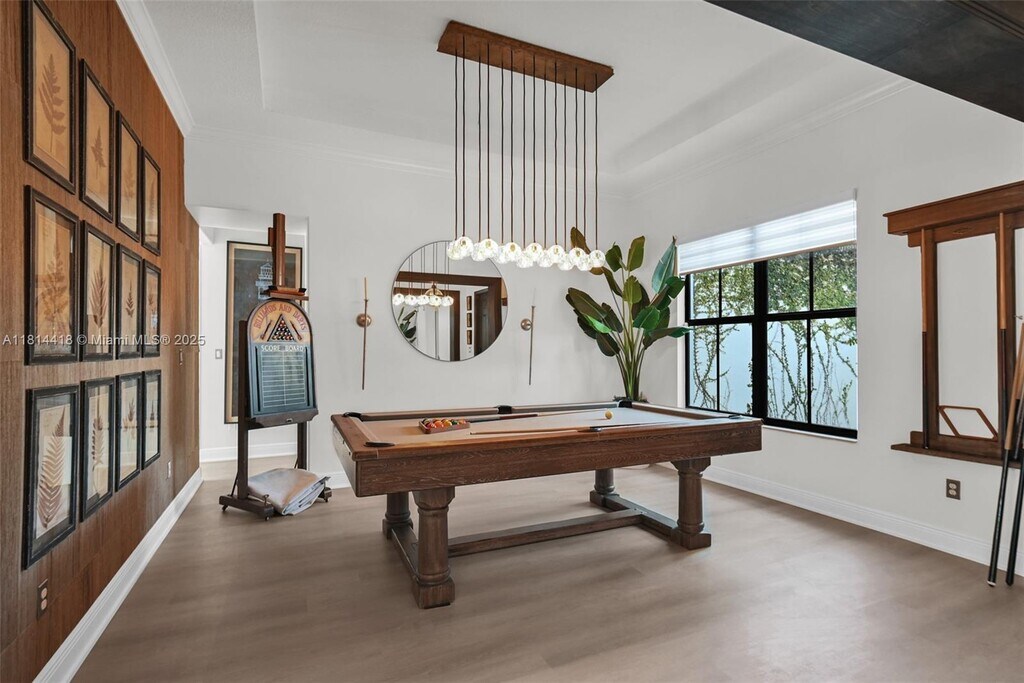 Welcome to paradise! This luxury waterfront estate home offers 5 bedrooms, 6 baths. The individual spaces include your private spa w/ a state of the art sauna, game room, formal dining, formal living room, a sizable family room, breakfast & a gourmet kitchen. The outdoor space encompasses a secluded resort-like ambiance. Including a full service summer kitchen, pergola, sitting room, lap pool w/ spa & waterfront putting green. This home is equipped w/ hurricane impact glass, portable generator, 3 car garage and is located on a cul de sac. the community of Monterra offers resort style amenities including tennis & b-ball courts, fitness center, tot lot & dog park. Zoned for a+ rated schools, just minutes from the airport & major highways. Bedroom floors is the same light color downstairs.