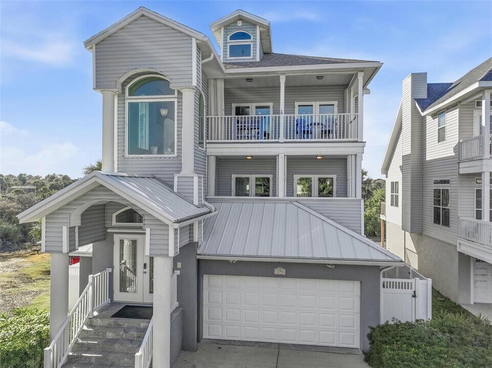 Stunning three-story coastal home offering over 3,000 sq ft of living space,featuring 4 bedrooms,3.5 bathrooms,and a 2-car garage,ideally situated directly across from the peaceful shores of Flagler Beach. The home is equipped with an elevator servicing all levels. The thoughtfully designed floor plan provides exceptional privacy. The first floor features two guest bedrooms,a full bathroom,and access to the rear patio. The second level offers an additional guest bedroom with a full bathroom,along with a spacious primary suite. The primary bedroom includes a sitting area and two large front and rear balconies,offering breathtaking Intracoastal and ocean views. The third level is dedicated to the main living areas and showcases a luxury kitchen designed down to the smallest detail. Highlights include a large walk-in pantry,half bathroom,and built-in fireplace. Two balconies on this level provide jaw-dropping elevated views. Additional features include three-zone A/C and heating,upgraded lighting,surround sound wiring,wood floors,electric and manual hurricane shutters,custom plantation shutters,central vacuum,custom lighting throughout,security and video surveillance systems,and Bose surround sound in the main living area and primary bedroom. Tenants can access the Intracoastal Waterway via a private rear walkway leading to a personal dock,complete with an electric covered boat lift and built-in seating—perfect for rela MLS# FC315573