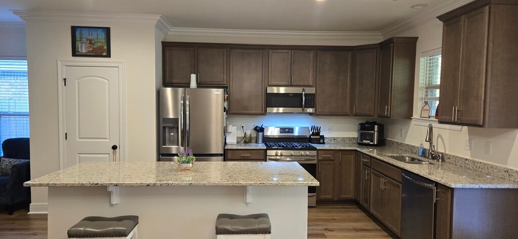 AMAZING 4 BEDROOM 2.5 BATH HOME IN EDGEWOOD AT MORGANFIELD. THIS HOME OFFERS OPEN LIVING, DINING & KITCHEN. KITCHEN FEATURES STAINLESS APPLIANCES + LARGE ISLAND. SPLIT FLOOR PLAN WITH MASTER SUITE IN THE BACK. LARGE MASTER BATH WITH GARDEN TUB AND SEPARATE SHOWER. TANKLESS WATER HEATER TOO! PRIVACY FENCED BACK YARD WITH COVERED PATIO, 2 CAR GARAGE WITH OPENERS. *QUARTERLY PEST CONTROL PROVIDED* (FYI - bird nest at front entry CANNOT be removed until September as it is punishable by law) Simplisafe security system in place with optional service for tenant at their expense. Tenant is responsible for maintaining the yard & landscaping and will also be responsible for any HOA violations. $2500 PER MONTH / $2100 DEPOSIT