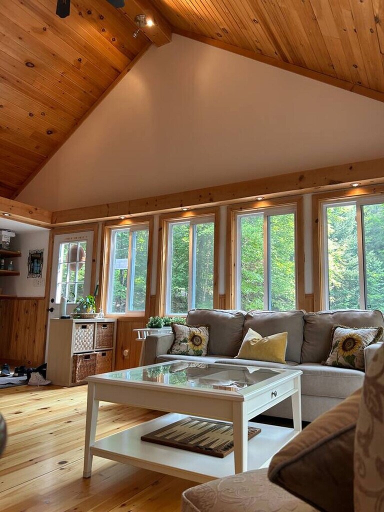 Feel at home at Lazy Days Lake House, where nature, comfort, and fun come together. This thoughtfully designed retreat features a spacious main cottage and a private bunkie, perfect for families, friends, or multi-generational groups. Enjoy stunning lake views, modern amenities, and a layout designed for relaxation, fun, and privacy. The main cottage features a walk-out basement with a bedroom with a double bed and a games room with a pool table and smart TV. The main floor has a fully equipped kitchen and an open-concept area with 2 living spaces and a dining room, with access to the large deck with a BBQ and outdoor dining. The top floor has a bedroom with a king-size bed and a Murphy bed, a bedroom with a queen bed, and a full bathroom. The bunkie is perfect for teens, extra guests, or those seeking a bit more privacy, and it features a loft bedroom with 2 twin beds, a full bathroom, a kitchenette, and a private porch with a seating area. Enjoy the large deck with a BBQ and seating, a screened-in pergola with a hot tub, a spacious yard for outdoor play, and a firepit area with 2 bistro sets. Guests have private access to the entire property, including the lake house and bunkie, dock, hot tub, and outdoor areas including the lake. Two single-person kayaks are included. There’s no shortage of outdoor adventure and small-town charm nearby. Parc Leslie is an 8-minute drive away and features a 1,000-acre park with a sandy beach, 14+ km of hiking trails, a playground, picnic spots, and wildlife viewing. The Otter Lake Recreation Association is 5 minutes away and features a public beach, splash pad, playground, tennis/pickleball courts, and a winter skating rink. Enjoy fishing and kayaking right from your shoreline or explore nearby lakes. Scenic country roads are great for cycling, morning jogs, or peaceful walks. For winter fun, cross-country skiing, snowshoeing, and ice skating are available locally. Chutes Coulonge Adventure Park is 25 minutes away and features zip-lining, forest trails, and one of the region’s most stunning waterfalls. Rumours Bar & Grill is 3 minutes away and offers a quick pizza or casual bite, and the Ladysmith Hotel is 9 minutes away and features rustic charm, hearty meals, and is a local favorite. Quiet hours are from 10:00 PM to 8:00 AM. Please respect our neighbors and keep noise to a minimum, especially outdoors or when using the hot tub. Pets are not allowed. Smoking is allowed outdoors only in designated areas, and all butts must be disposed of properly. Failure to follow the house rules may result in additional charges or immediate termination of your reservation. Check-in is at 4:00 PM and check-out is at 11:00 AM. The exterior of the property is monitored by security cameras. Outdoor amenities (dock, furniture, BBQ) are available seasonally, typically May–October. Registration Number: 321495 [SI]