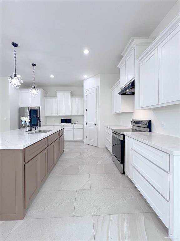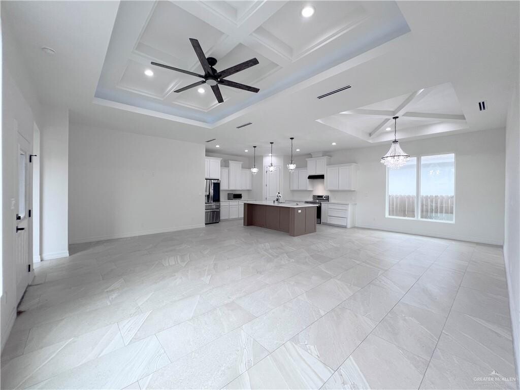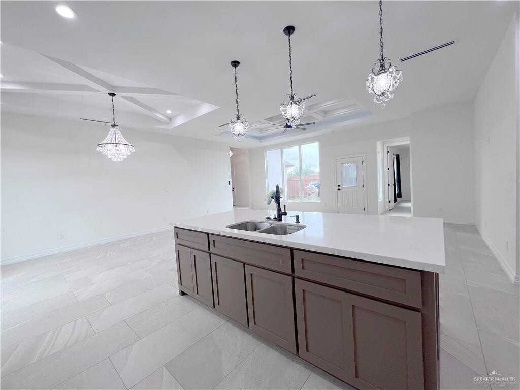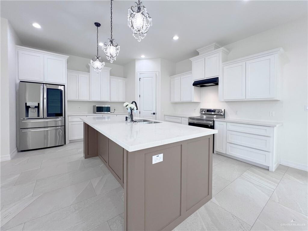Discover this spacious 3-bedroom,2.5-bath home in Edinburg,TX,featuring an open floor plan with high ceilings and porcelain floors throughout. The kitchen is a focal point,offering white cabinets,a kitchen island,pantry,stove/oven,microwave,and refrigerator — ideal for everyday cooking and entertaining. The primary suite includes a double vanity and a tile walk-in shower,while additional bedrooms provide ample storage with walk-in closets. Practical touches include a dedicated laundry room,ceiling fans,decorative light fixtures,a double-door entry and an attached two-car garage. Modern finishes and thoughtful storage make this residence both attractive and functional.