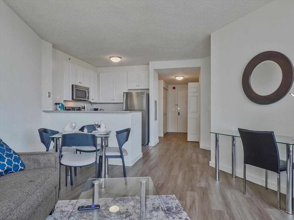 Set along Jersey City’s waterfront, this apartment pairs comfort-focused living with stunning views of the Manhattan skyline. Inside, you'll find wood-style floors, ELFA closets, an in-unit washer and dryer, and a spa-inspired bath. Outside, enjoy a sundeck with grilling areas, a yoga studio, and bike storage. Located near the Powerhouse Arts District, with galleries and cafes nearby, and easy access to NYC by road, rail, or ferry, it's city living with a relaxed edge. This apartment offers prime views of the Manhattan skyline and easy access to the Holland Tunnel, Liberty State Park, and nearby transit options. With a strong corporate presence and walkable streets, many residents enjoy short commutes or bike rides to work. The amenities are well-rounded, including yoga and boxing studios, a library, a kids club, and a golf simulator room. Outdoors, there’s a sundeck with grilling areas, secure bike storage, and garage parking. The Powerhouse Arts District brings a creative, eclectic energy to the area, with galleries, cafes, and bars that reflect the neighborhood’s evolving character. It’s a dynamic setting that blends convenience with culture. With a pet-friendly, smoke-free environment and energy-efficient appliances throughout, the community is built for modern living. It's quiet, practical, and connected to everything Jersey City has to offer. [SI]