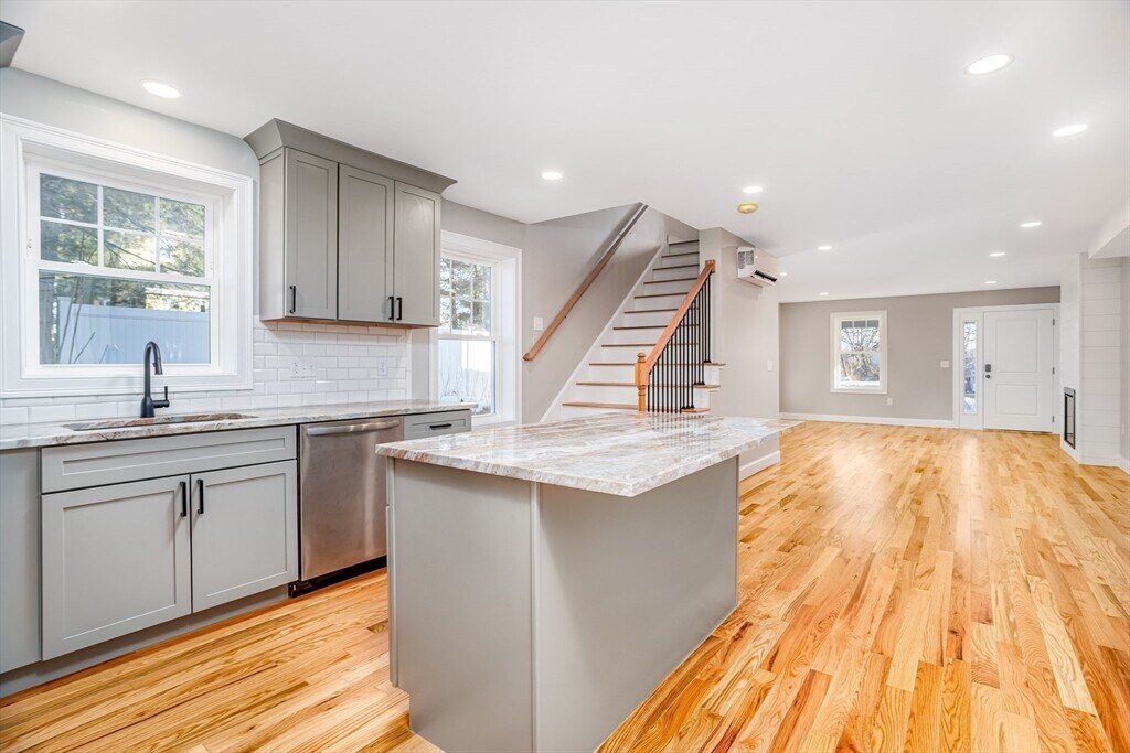New construction townhouse-style rental offering modern design and quality finishes throughout. This spacious 3-bedroom,2-bath unit features approximately 1,450 sq ft of living space with an open concept layout. The main level includes a bright living room with fireplace and access to a composite deck,oak hardwood flooring,recessed lighting,and is filled with natural light. The chef's kitchen features upgraded cabinets,granite/stone countertops,stainless steel appliances,pantry,and a large center island open to the dining area. A full bathroom is conveniently located on the first floor,while the second floor includes three bedrooms and another full bathroom. Additional features include heat pump heating with A/C,in-unit laundry hookups,mudroom entry,and two assigned off-street parking spaces. Make this stunning new construction apartment yours today!! MLS# 73487000