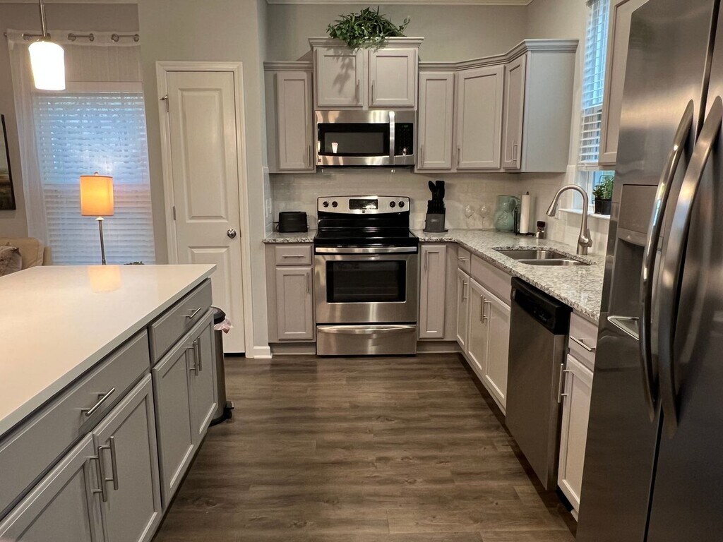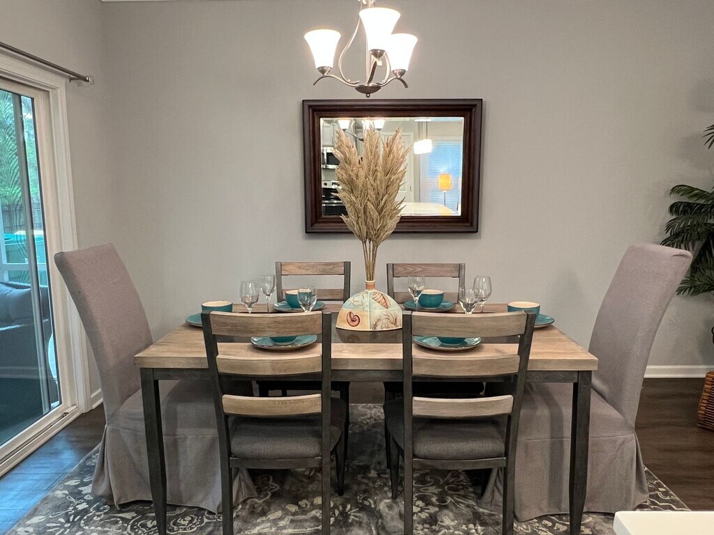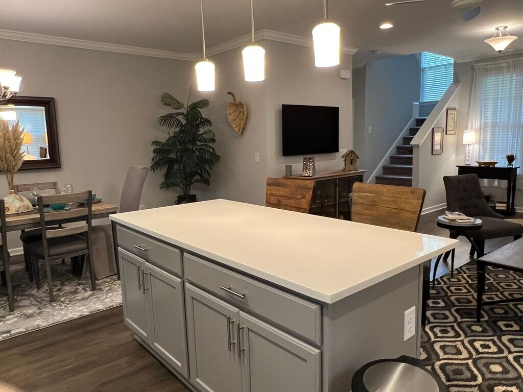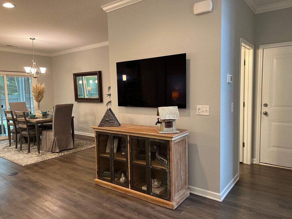Fully furnished three bedroom, two and a half bathroom Daufuskie model available now. Used as a model, this home is upgraded with luxury vinyl plank flooring throughout the main living areas,upgraded cabinetry and tile back splash in the kitchen, custom tile master bathroom shower and more! Living and dining area downstairs, as well as a powder room for guests. Three bedrooms upstairs. The master bedroom has a walk-in closet and en-suite bathroom. Relax on the secluded screened-in porch or check out the neighborhood amenities including playground, park, and pool. Central location within walking distance to Bluffton Middle School, and a short drive to shopping and dining in the Promenade. NO PETS ALLOWED.
