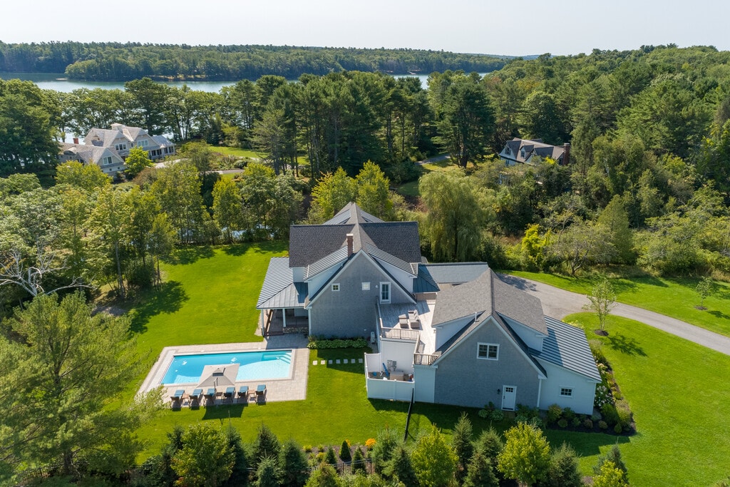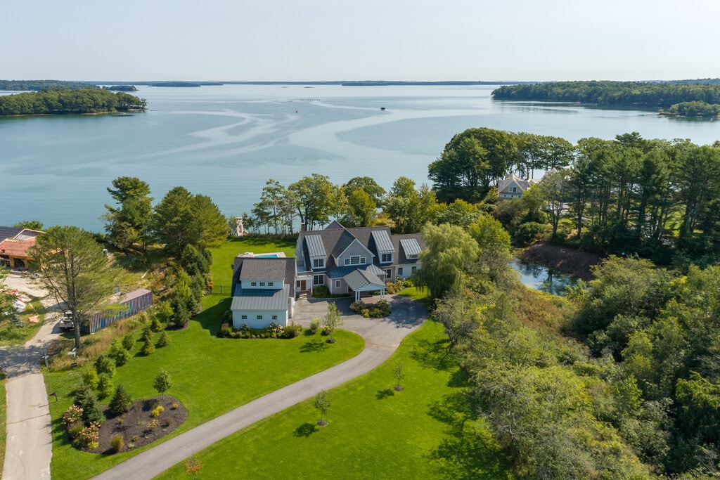 Legacy Properties Sotheby’s International Realty is proud to offer, 33 Sarah Goud in Yarmouth. Discover the pinnacle of waterfront luxury at this newly constructed shingle-style estate, designed to offer an unparalleled living experience. Nestled on the serene shores of Casco Bay, this magnificent property presents breathtaking panoramic views of the surrounding islands, providing an idyllic backdrop for your ultimate retreat. Spanning over 6,000 square feet, this timeless architectural masterpiece boasts more than just stunning vistas. The estate is meticulously designed to cater to the most discerning guests, featuring four opulent en-suite bedrooms, including two master suites located on both the first and second floors, ensuring privacy and comfort for all. Additionally, there is overflow space in the 5th "bedroom" with two sets of twin bunk beds. Indulge in the epitome of luxury with our estate's exceptional amenities. Each bedroom is a sanctuary of tranquility, offering lavish accommodations for up to 10 guests. The property is equipped with state-of-the-art air conditioning and a heated pool, ensuring comfort regardless of the season. With 5 full and two half baths, your convenience and privacy are guaranteed. Experience seamless indoor-outdoor living with waterfront decks on both the upper and lower levels. Bask in the sun on the expansive lawn, or enjoy the gentle ocean breezes from multiple vantage points throughout the property. For those who seek adventure, easy water access invites you to immerse yourself in coastal activities such as swimming, kayaking, and paddleboarding. Whether you're seeking a peaceful retreat to disconnect and rejuvenate or a lavish space to entertain and celebrate, this incomparable waterfront estate offers the perfect setting. Book your stay and experience the ultimate in luxury, comfort, and natural beauty.