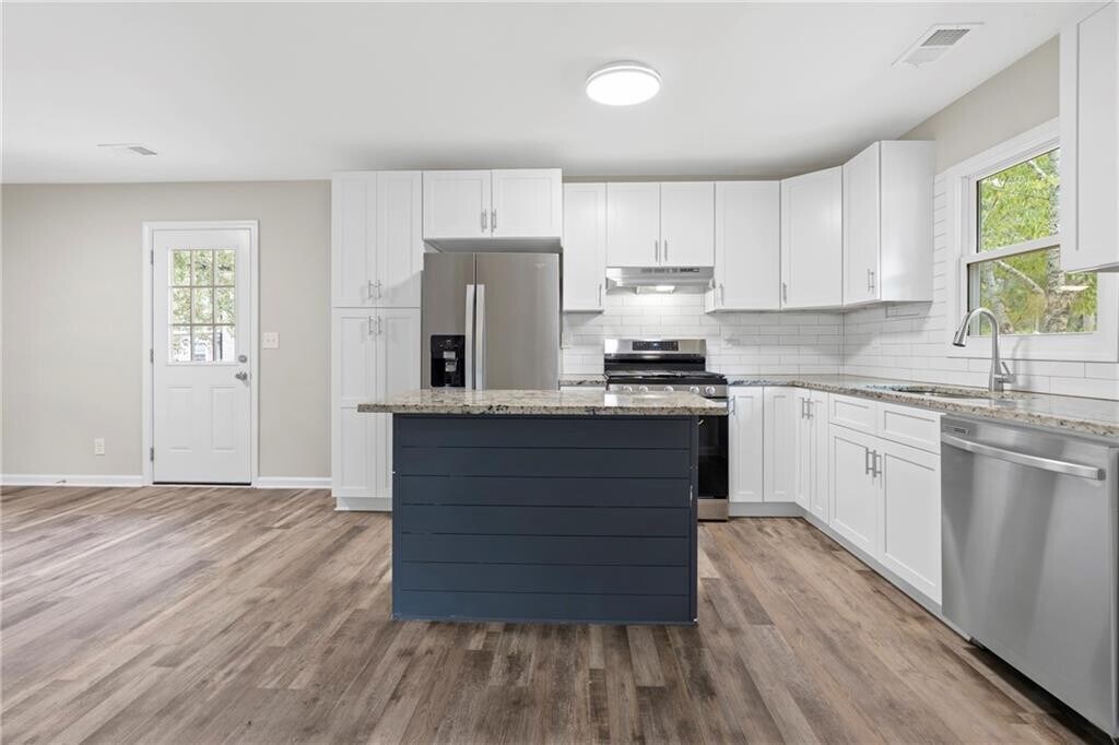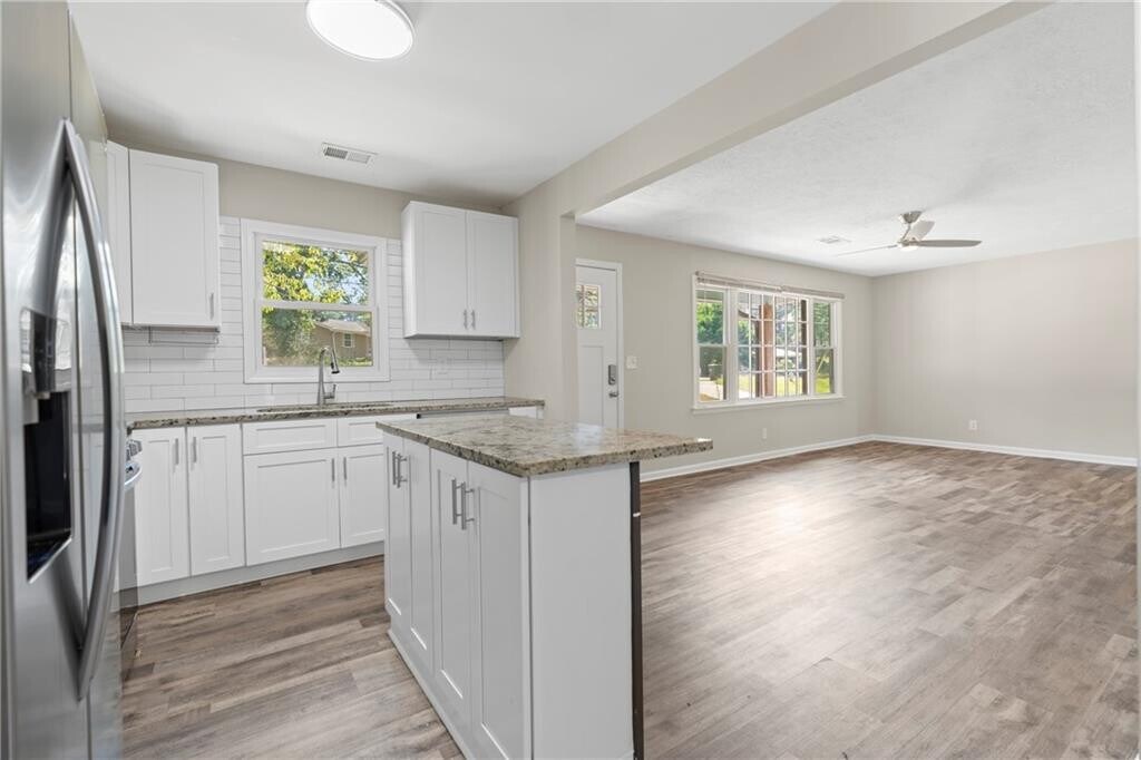 Welcome home to this beautifully updated 4-bedroom,3-bath ranch,perfectly situated near Smyrna with quick access to shopping,dining,and major highways. From the moment you arrive,you’ll notice the spacious driveway that provides plenty of parking for family and guests. Inside,this home has been thoughtfully renovated with new flooring and fresh interior paint,creating a light and welcoming atmosphere throughout. The open layout flows easily between the living spaces,making it ideal for both everyday living and entertaining. The kitchen and bathrooms have been refreshed,and the home boasts a rare 3 full baths—a feature that sets it apart in the neighborhood. All major systems have been addressed,including updated plumbing,updated electrical,and a brand-new roof,giving you peace of mind for years to come. Downstairs,the basement includes a full waterproofing system,ensuring the space stays dry and ready for storage,hobbies,or future expansion. Out back,enjoy a large,private backyard perfect for outdoor activities,along with a spacious back deck that’s ideal for grilling,gatherings,or simply relaxing at the end of the day. With its blend of modern updates,functional layout,and unbeatable location,this Marietta ranch is move-in ready and waiting for its next chapter.