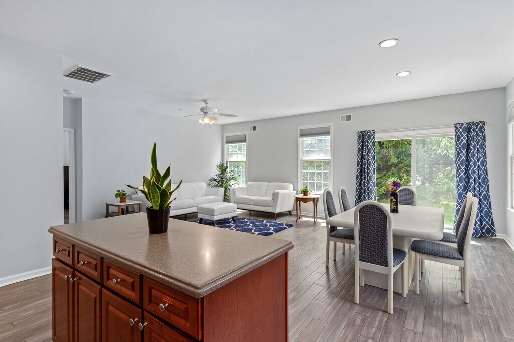 A rare and exciting rental opportunity in Canal Walk, central New Jersey's premier active adult community. This beautifully updated, single-level 2-bedroom + den, 2-bath single-family home with an attached 2-car garage is ideally located near the clubhouse, fitness center, indoor and outdoor pools, tennis and pickleball courts, and scenic walking trails. Recent upgrades include a paver driveway and walkway, hardwood floors, an ultra-quiet Bosch 800 Series dishwasher, LG refrigerator, and LG washer and dryer with pedestal storage (plus a convenient second pedestal washer). Major systems have been completely modernized with a brand-new HVAC (2024) and brand-new hot water heater (2025) for comfort and efficiency. The spacious primary suite features dual walk-in closets and a luxurious en-suite bath with double sinks, a large vanity, and a separate tub and shower. Step outside to your private patio with a natural gas hookup and Weber grill perfect for outdoor dining or peaceful evenings at home. Conveniently located near I-287, shopping, dining, golf courses, and top medical centers (Robert Wood Johnson and St. Peter's University Hospital). This is single-level living at its finest offering comfort, community, and the lifestyle you've been looking for! Rent: $3,925/month Security Deposit: 1 month Lease Term: 12 months Availability: January 1, 2026 Pets: Negotiable Included: HOA fees (access to all community amenities, snow removal, lawn care excluding flower beds). Tenant pays: Utilities (Electric, Gas, Water, Sewer, Cable/Internet)