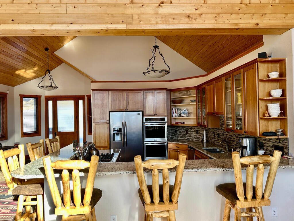Welcome to your dreamy and fully furnished mountain home! With a two car garage, spacious living area & kitchen, outdoor patio, hot tub and fire pit, this property provides both convenience and luxury! Come inside to discover beautiful vaulted ceilings and large windows to enjoy breath taking mountain views while basking in the warmth of the fireplace. Enjoy making home cooked meals in this stunning kitchen with all newly updated stainless steal appliances! Step into any of the 5 bedrooms with gorgeous knotted wood furniture and fully carpeted flooring. Downstairs welcomes plenty of space for games and activities for kids and adults to enjoy with a bar, multiple seating areas, and another fireplace! 33 Timberline is located just 30 minutes from Winter Park Ski Resort and a short 10 minutes from downtown Granby, while both in a peaceful and quiet neighborhood. Welcome to this fully furnished mountain home with a functional layout and multiple living areas. The home includes a la...