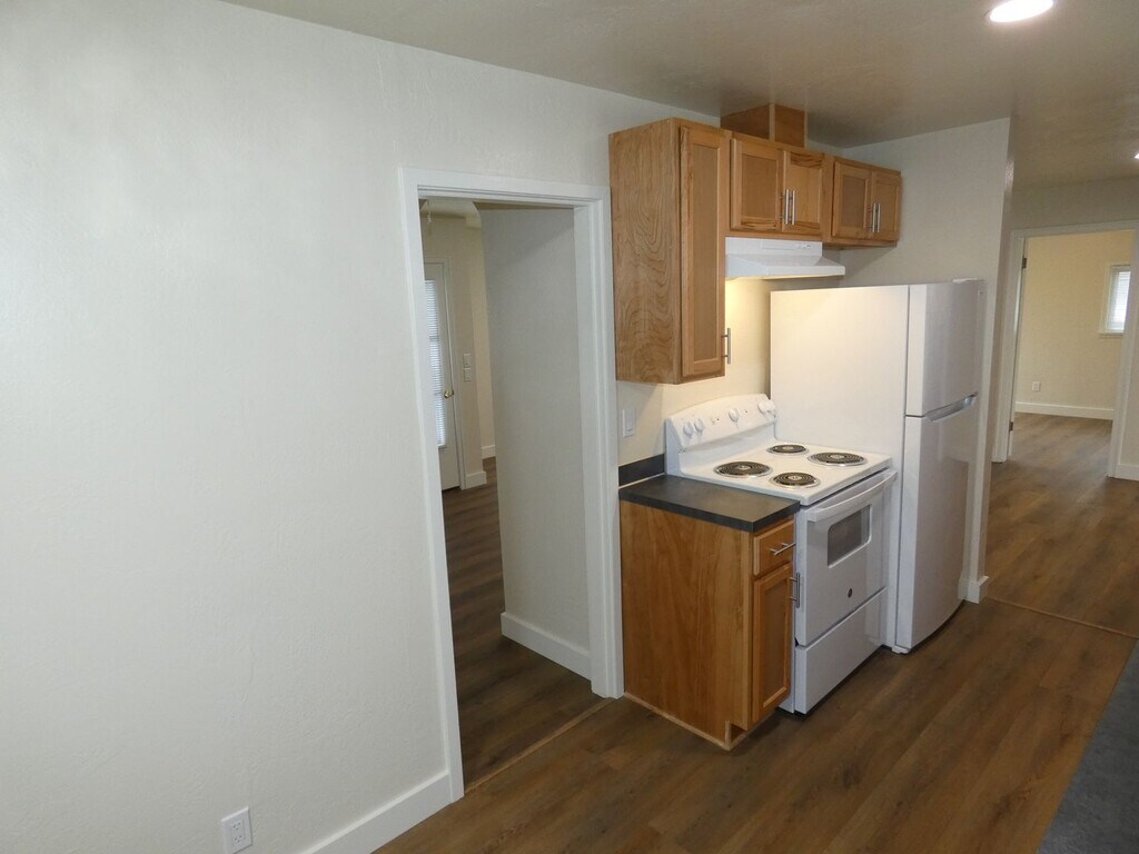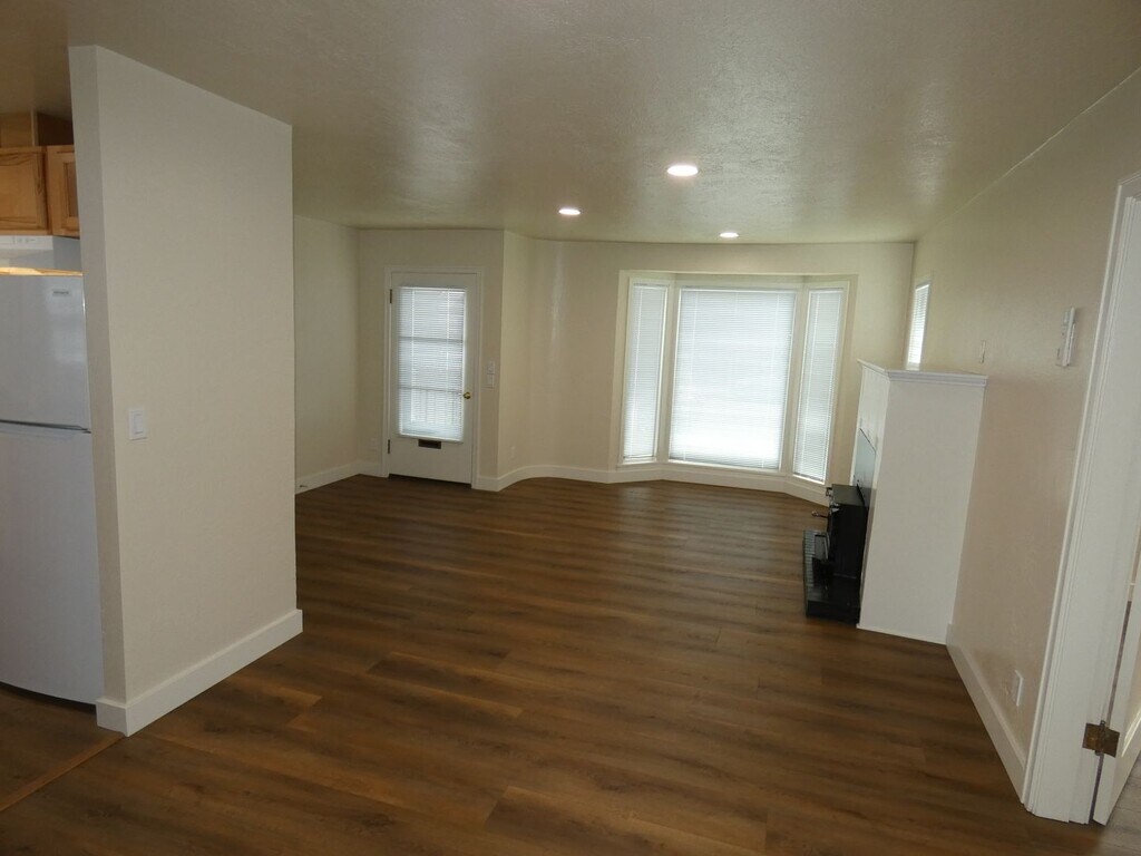 This cozy home offers great character and charm. It has been fully remodeled! All new LVP flooring through out, fresh paint, new cabinets, counter tops and lighting. every detail accounted for! It offers washer/dryer hooks ups and a nice floor plan. The fire place is not to be used. The back yard is spacious and fenced and all yard care is included!! The back has a small garage for added storage as well as a car port. Its within walking distance to near by stores and restaurants. This is a must see space!