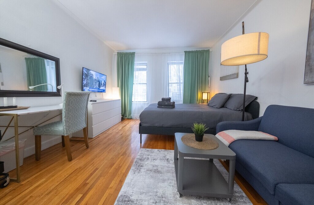 The advertised rate of $4,089/month is the lowest available price, based on a 1 month(s) stay with a move-in date of April 2, 2026. Rates vary depending on the duration of stay, season, and other parameters. For exact pricing and additional pricing components, please visit our website and enter your desired move-in and move-out dates. The rate is applicable when billed upfront; it can be higher if billed in multiple payments. Charming and stylish, this fully furnished studio apartment offers all the necessary amenities for a comfortable stay. Located in a walk-up building on the 1st floor, one flight up, it provides a cozy retreat with a queen-size bed and a sleeper sofa with a topper. The apartment includes a desk, mirror, and AC, ensuring a pleasant living environment. The kitchen is fully equipped with a large refrigerator, stove top, oven, coffee maker, toaster, microwave, and all the utensils and cutlery you might need during your stay. A good-sized marble bathroom features both a shower and a bathtub. The apartment also provides bed linen, towels, an iron, and a hair dryer. Laundry facilities with a washer and dryer are available in the basement. Wi-Fi at 600 Mbps and all utilities, including heat, hot water, and gas/electricity, are included. Parking is available on the street and is free. However, alternate side parking is in effect most days, so make sure to read all signs to avoid tickets. Situated in the Upper East Side, this apartment is just 2 minutes from the Q train line at the 72nd Street subway station and 8 minutes from the 6 train line at the 77th Street subway station. A City Bike station is 200 meters away, and there are plenty of restaurants right on the corner. The neighborhood is known for its posh buildings, flagship boutiques on Madison Avenue, and proximity to renowned museums like the Metropolitan Museum of Art and the Solomon R. Guggenheim Museum. Smoking inside or outside of the house will result in a fine of $500. Pets are not allowed. Luggage storage is not available, so please use a service like to store your luggage before check-in or after check-out. The apartment must be used for vacation purposes only, and no commercial use is allowed. Quiet hours are from 10 pm to 7 am. You cannot receive mail at this address, so consider opening a PO Box. Check-out time is 11:00 AM, and excessive cleaning charges may apply if the apartment is not left in good condition. Kindly note that a $350 refundable security deposit is required and will be collected directly by the partner after your booking is confirmed. The security deposit will be handled through direct communication with the partner and is not processed automatically. [SI]