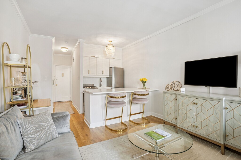 Apartment 5K is a pristine, meticulously renovated top-floor studio offering a gracious layout within a charming boutique cooperative. Thoughtfully designed and exceptionally quiet, this inviting residence blends timeless prewar character with modern refinement, featuring beautiful hardwood floors, crown moldings, soaring ceilings, and custom-designed closet space throughout. Bright northern exposures fill the home with soft natural light. The renovated open kitchen is both stylish and functional, appointed with custom cabinetry, stainless steel appliances, a built-in microwave, quartz countertops, and an oversized breakfast island that is ideal for everyday living, dining, or entertaining. The bathroom has also been tastefully renovated and is conveniently situated just off the main living area. 330 East 83rd Street is an impeccably maintained prewar building offering a part-time doorman (Monday through Friday, 2:00 PM to 10:00 PM), central laundry, and a live-in superintendent. Perfectly positioned near Carl Schurz Park and the East River Promenade, the building also offers seamless access to the Q, 4, 5, and 6 subway lines. Pets not allowed. Also available furnished. -$600 Processing fee payable to Gumley Haft (non-refundable) -$150 Credit report/background check fee per applicant payable to Gumley Haft (non-refundable) -$500 Move-in fee payable to 330 East 83rd Street Realty Corp. (non-refundable) Rental Terms: Monthly: $3,200