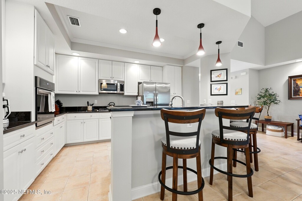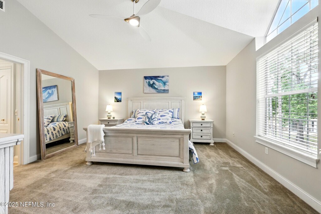 Enjoy the luxury resort lifestyle at The Residences at World Golf Village condominiums! This second floor unit offers an open concept design with vaulted ceilings,gas fireplace in the great room. Large,bright sliders access a screened,covered balcony with a stunning view of live oaks,palms,and pond. It's your own luxury treehouse! There are 3 large bedrooms (2 en-suites),3 bathrooms,and a 1 car garage. Primary suite has built-in closet system. Security gate with on-site security patrols. 6 month minimum lease,includes water,sewer,garbage/recycling,gas,security,pest control,grounds maintenance. Tenant pays electric and internet/cable. Pets below 50 lbs considered on a case by case basis. Enjoy exclusive access to condo community pool,spa,gyms and also at the King & Bear. MLS# 2120094